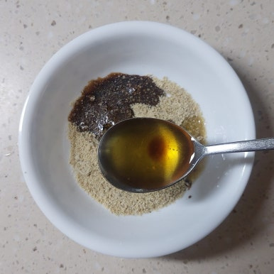 들깨가루 2큰술, 국간장 1큰술, 들기름 4큰술, 다진 잣 1큰술