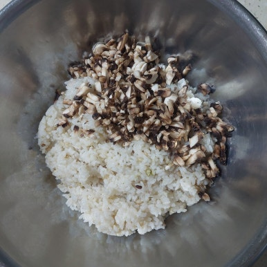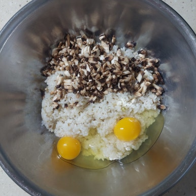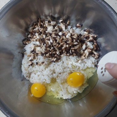 밥 1공기, 양송이버섯 5개, 달걀 2개, 소금 약간