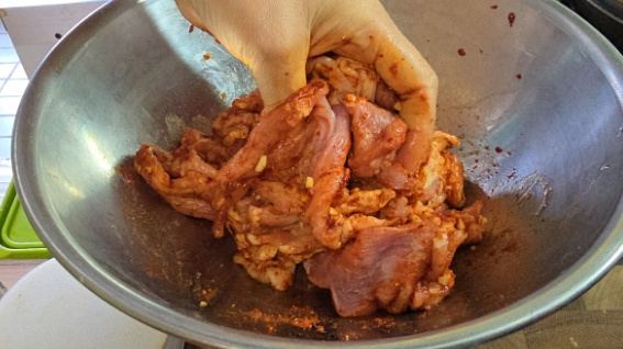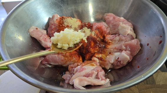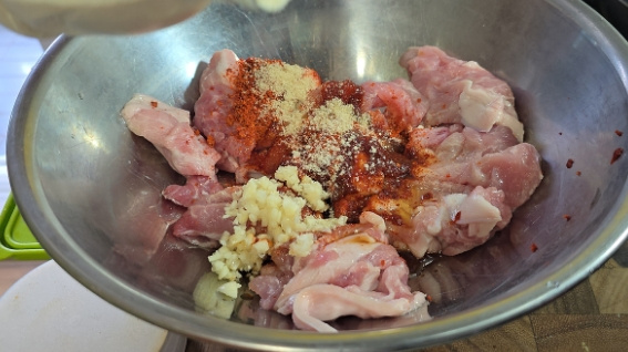 양념이 골고루 스며들도록 10분 정도 재워두면 맛이 깊어집니다.