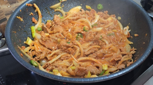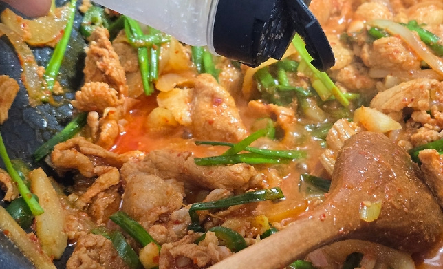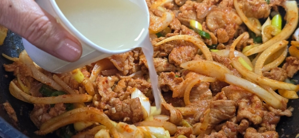 이 과정에서 고기에 양념 국물이 스며들며 자작한 스타일로 완성됩니다.