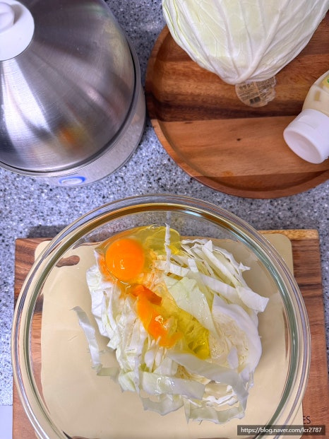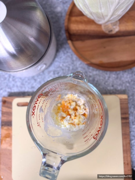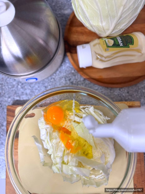 삶은 달걀 1개를 껍질 벗겨 으깨고,