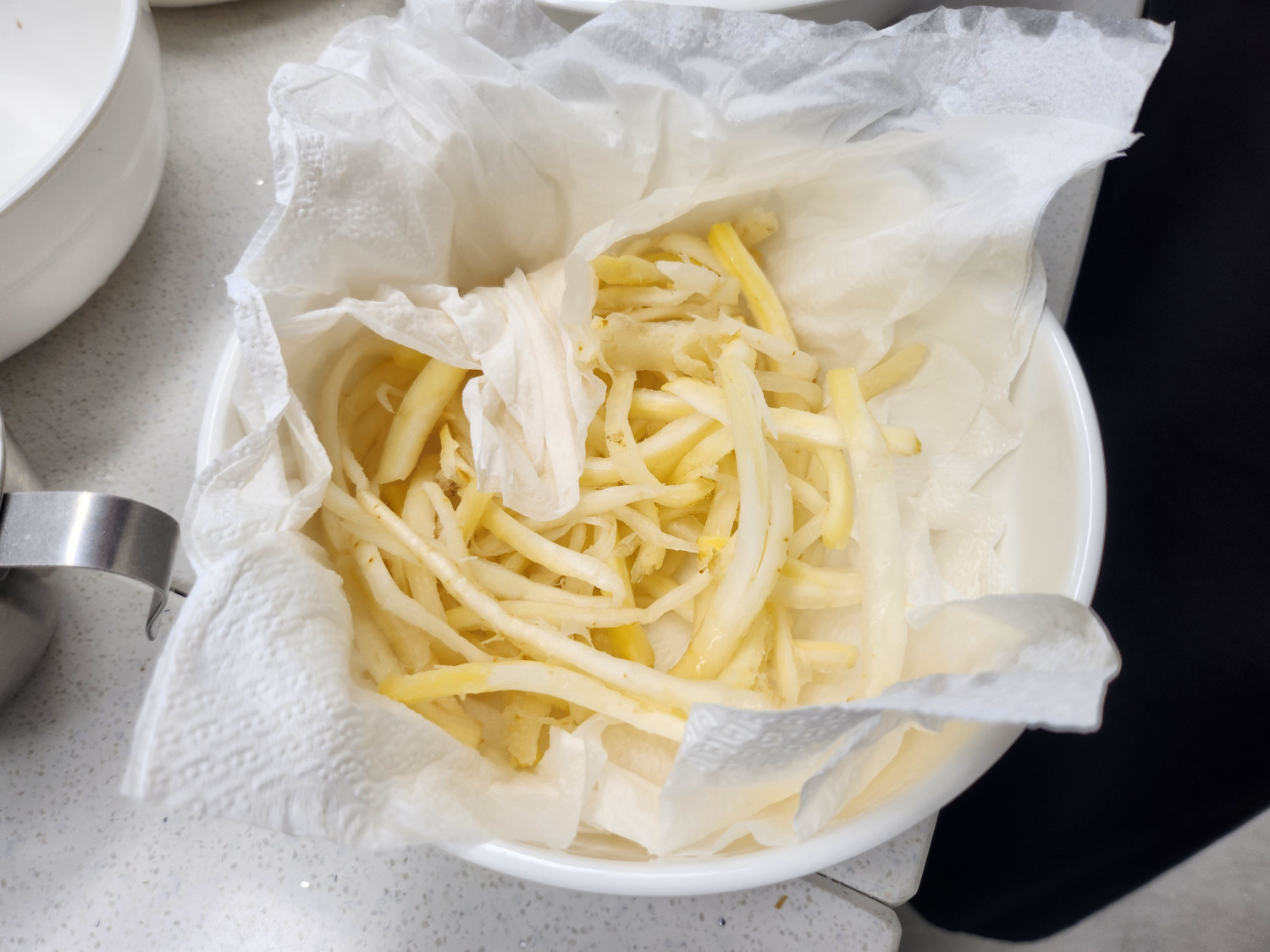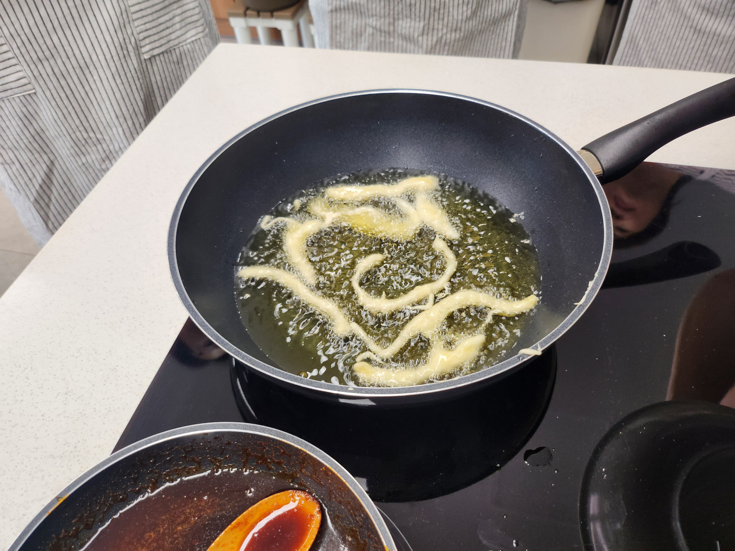 젓가락 주변에서 작은 기포가 빠르게 올라오면 튀김 요리에 가장 적합한 온도!