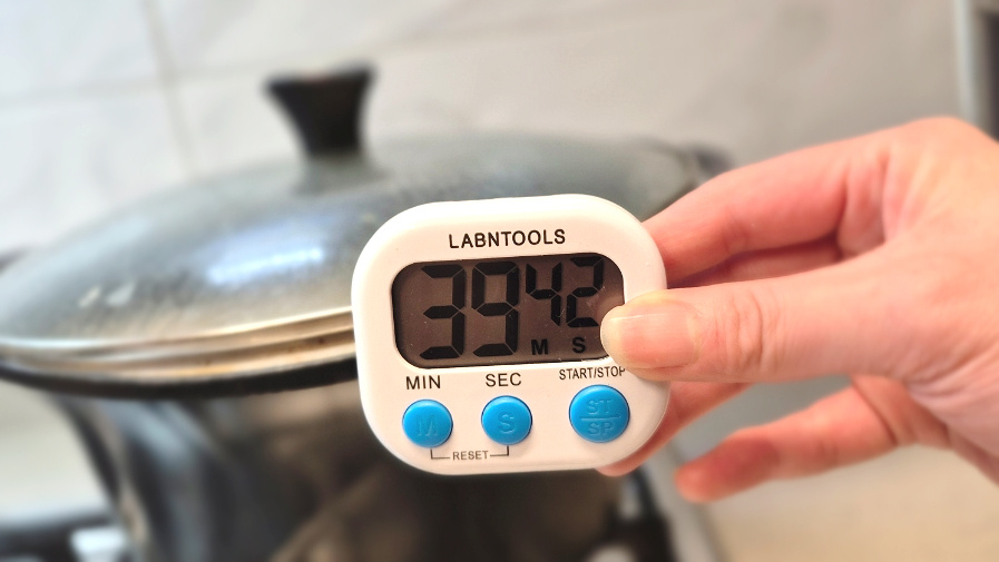 뚜껑 덮고 중불>약불에서 40분간