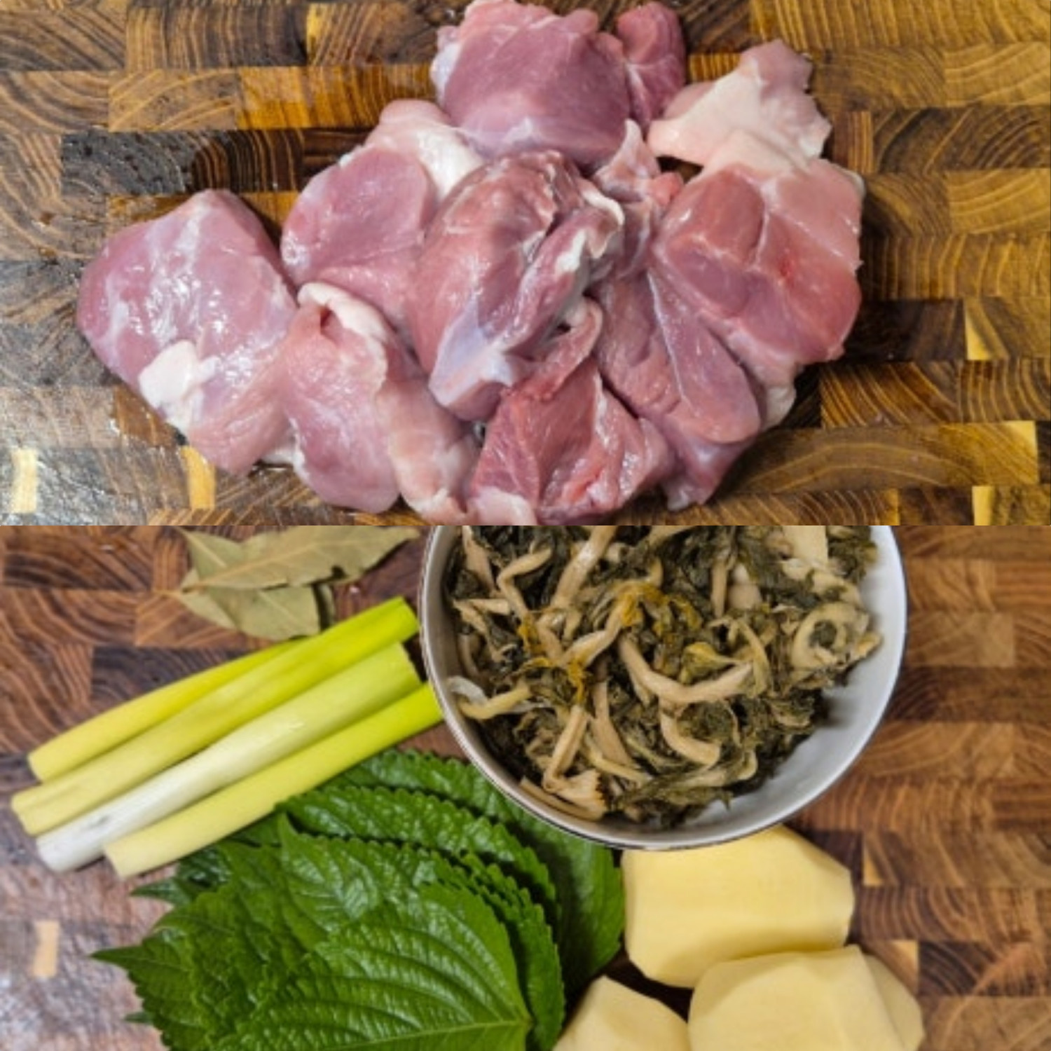 돼지고기, 월계수잎 2~3장을
