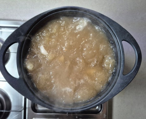 넣어서 뚜껑을 열고 끓입니다.