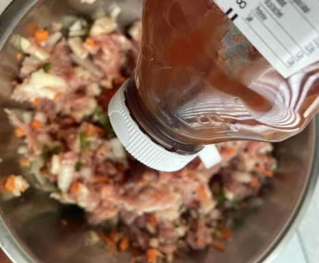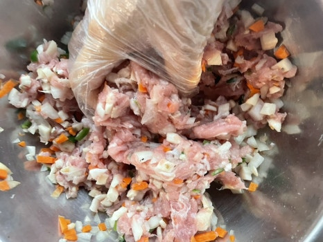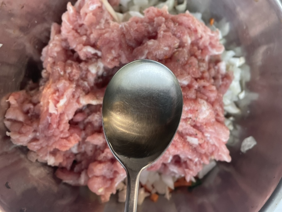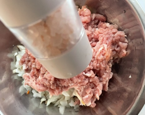 저는 두부를 빼먹고 했더니 다짐육이 좀 퍽퍽한 느낌이라 두부를 같이 넣는 걸 추천해요.