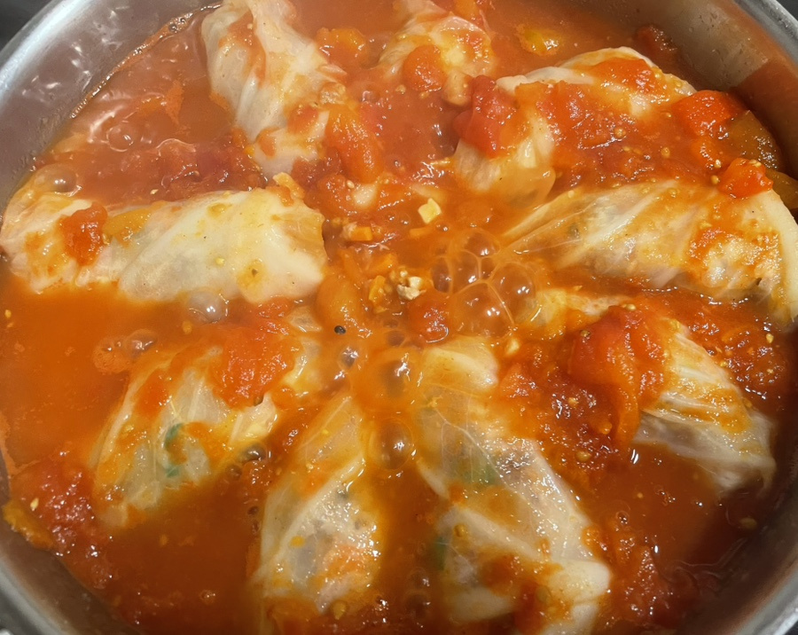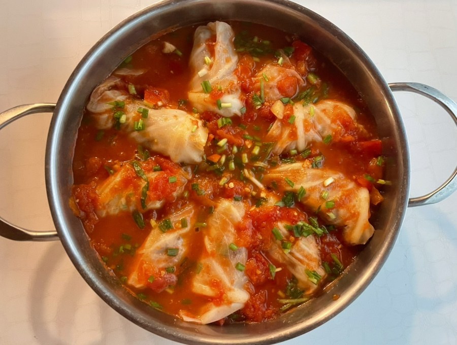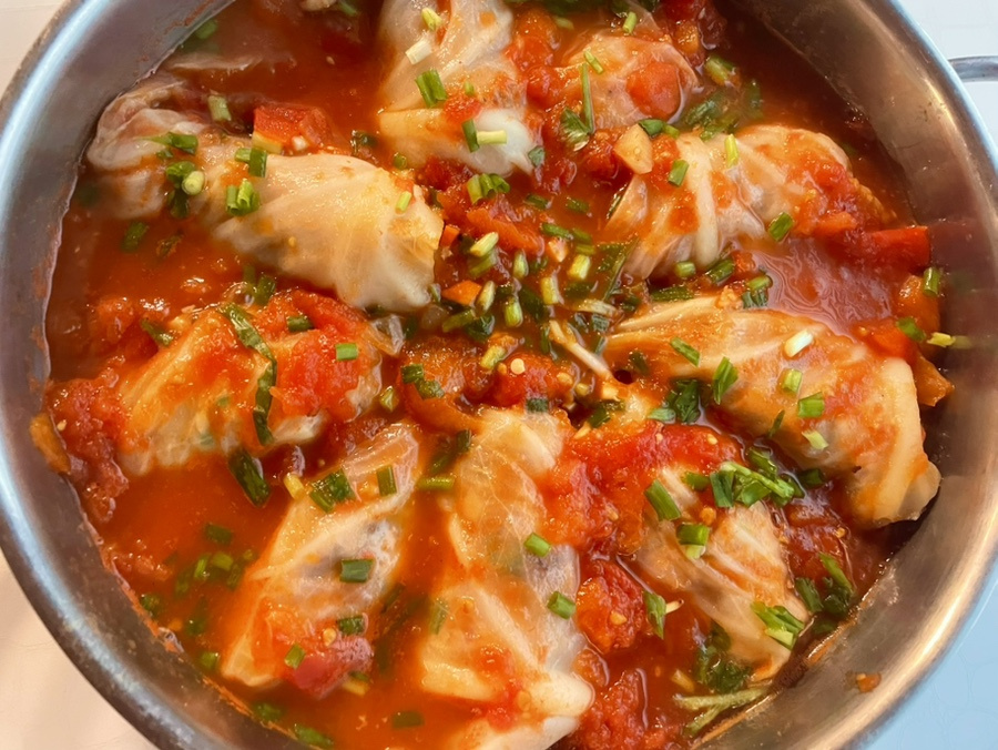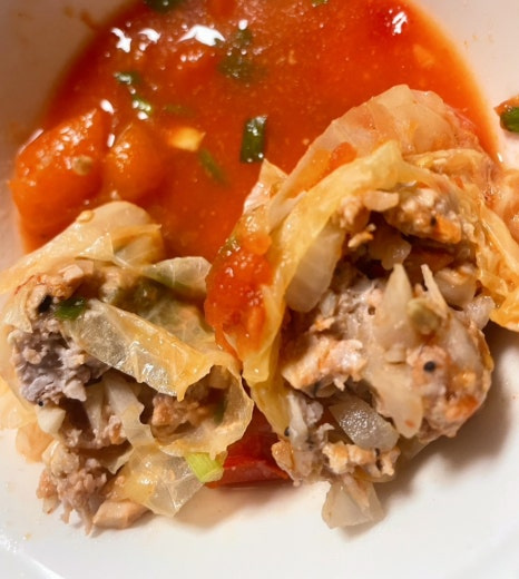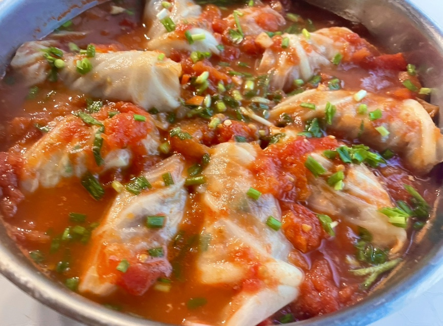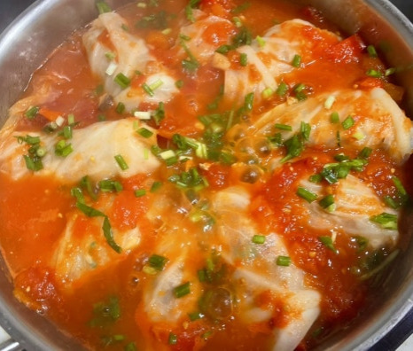 새콤하고 산뜻한 토마토소스에 빠진 양배추롤찜이 부드럽고 여러가지 재료가 입안에서 같이 씹히면서 만두를 서양식으로 먹는 맛이 나요. 여러가지 재료가 골고루 들어가서 영양의 밸러스도 좋고 부드러운 양배추가 감싸고 있어서 달큰한 맛과 토마토소스의 건강한 신맛과 감칠맛이 입안에서 축제를 벌이는 맛이예요~시판 토마토 소스를 활용하면 조리가 훨씬 간편해지니 주말 가족 요리나 손님 접대 요리고 활용하기 좋아요.