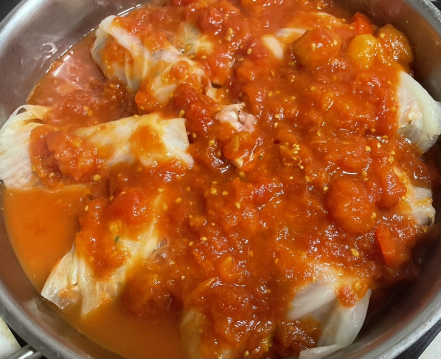 오늘은 토마토소스를 활용한 다이어트 요리로 양배추롤찜을 만들었어요.