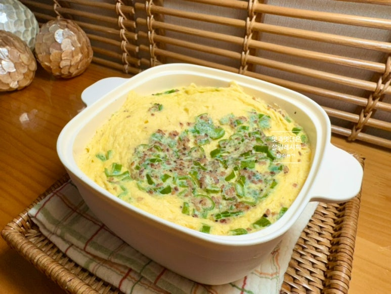 다진 파와 깨, 후추를 고명 재료로 솔솔 뿌려주었는데요. 당근이나 크래미 등 취향에 맞는 재료로 토핑 재료 올려주셔도 좋으니 간단하면서 인기 메뉴로 최고인 간단 달걀찜 만드는 법 차근차근 소개해 드립니다.