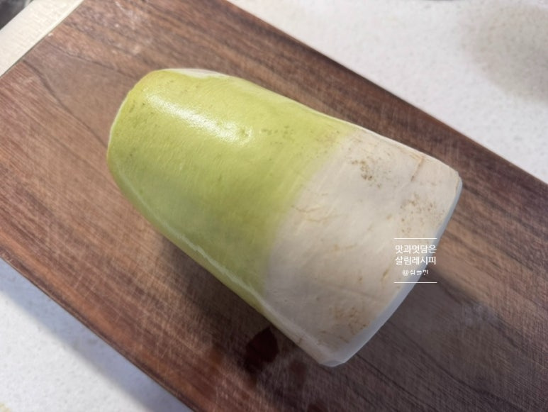 줄기 쪽 초록 부분이 단맛이 강하기 때문에 생으로 먹기에 좋아요. 국이나 조림으로 만들 땐 비교적 단단한 중간 부분부터 반대쪽을 활용하면 좋습니다.