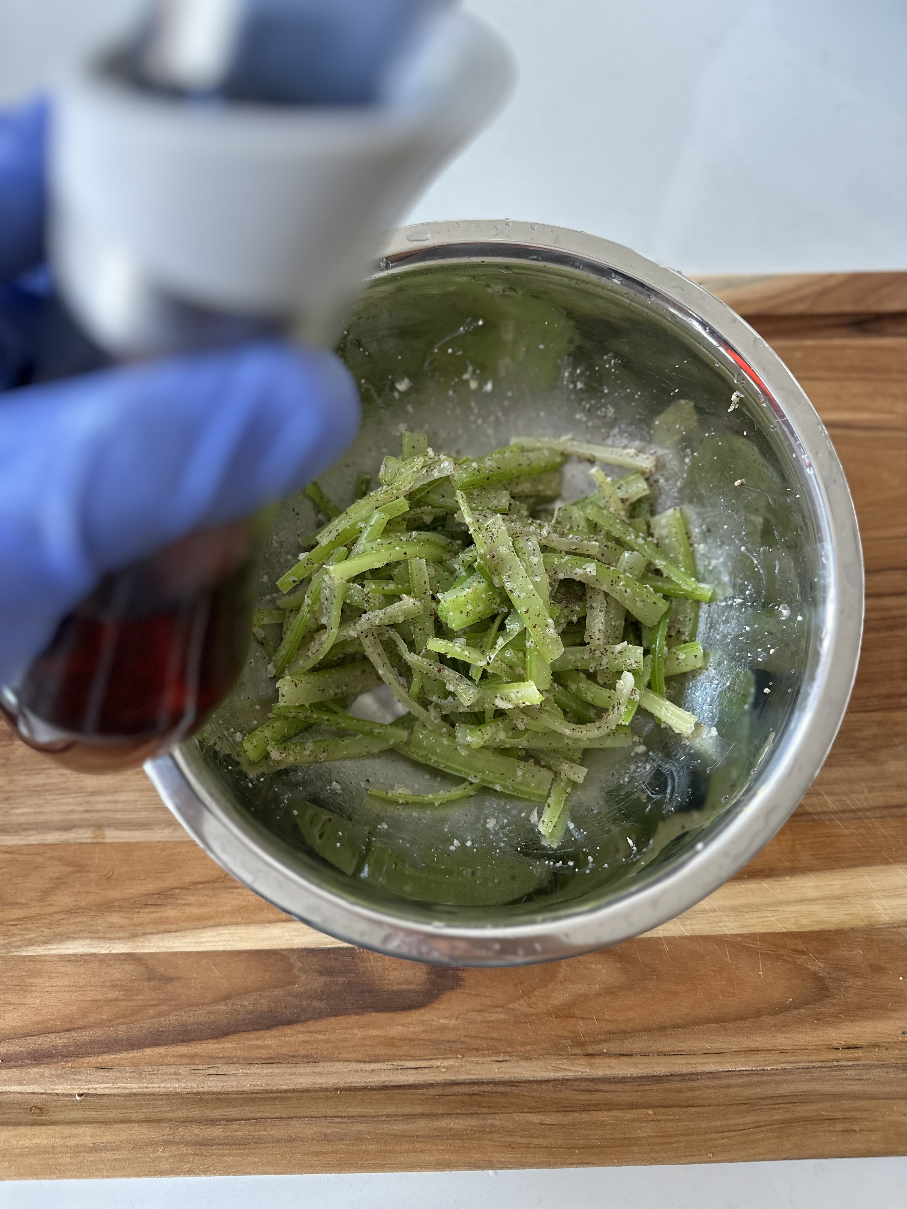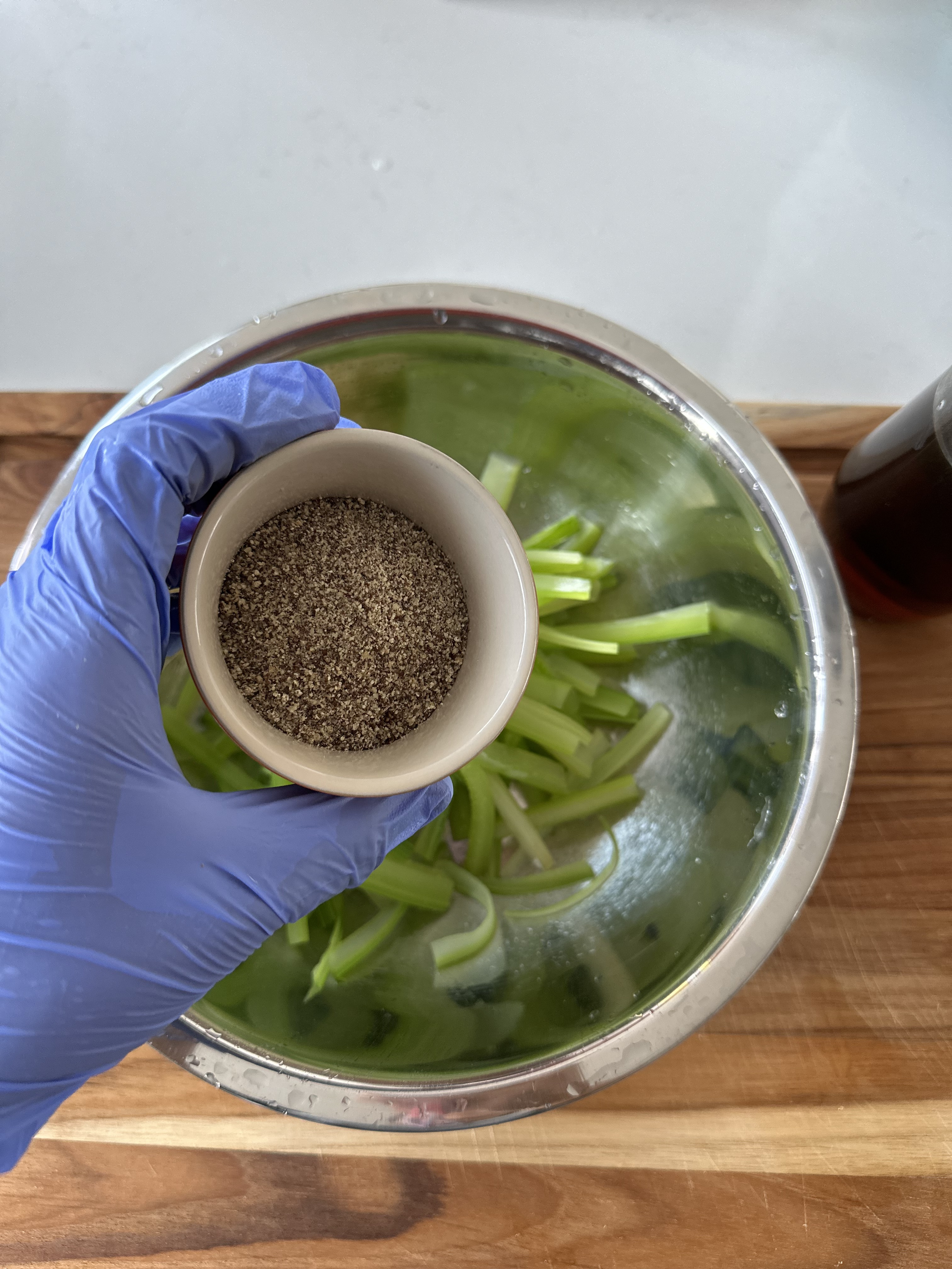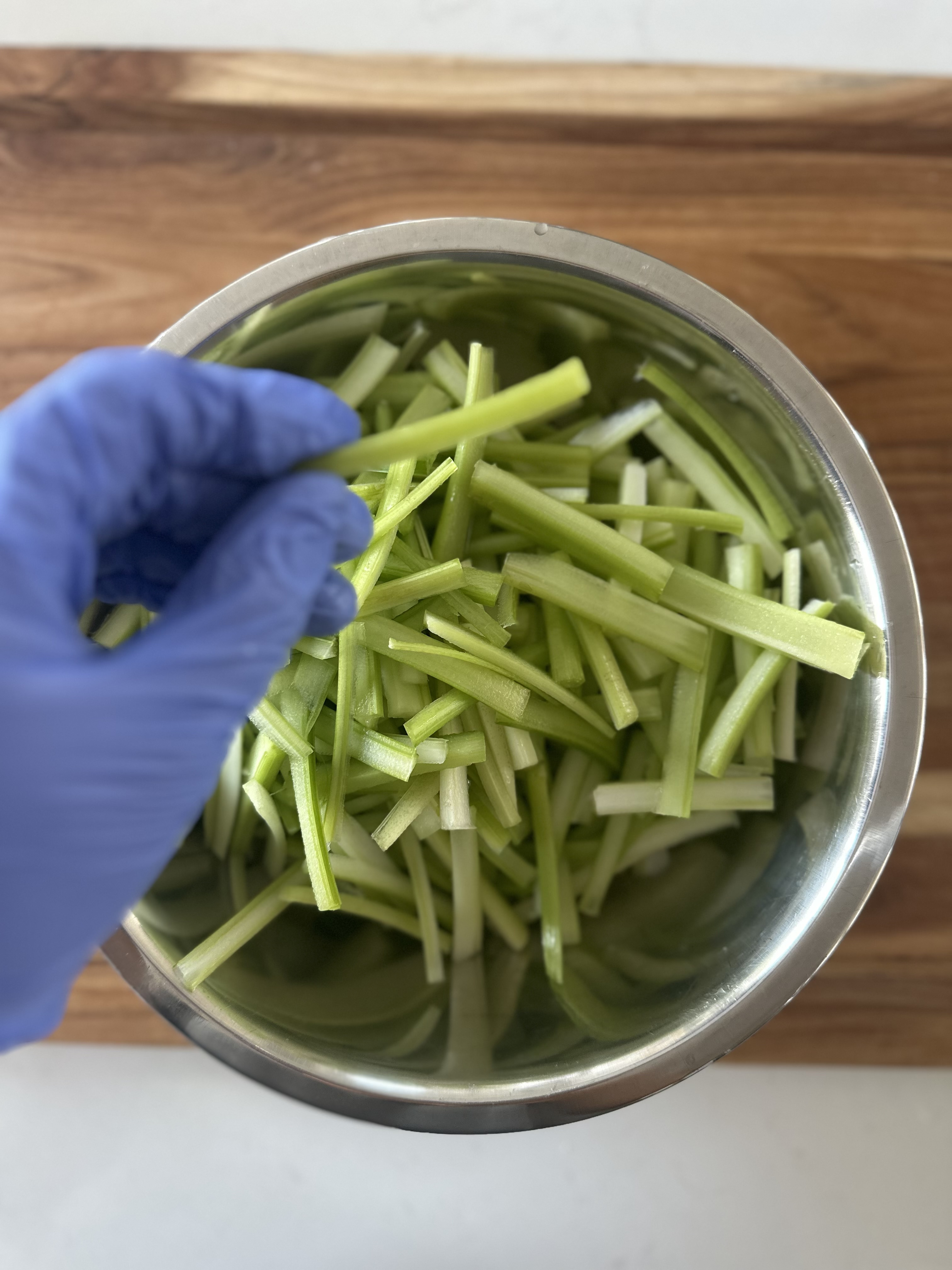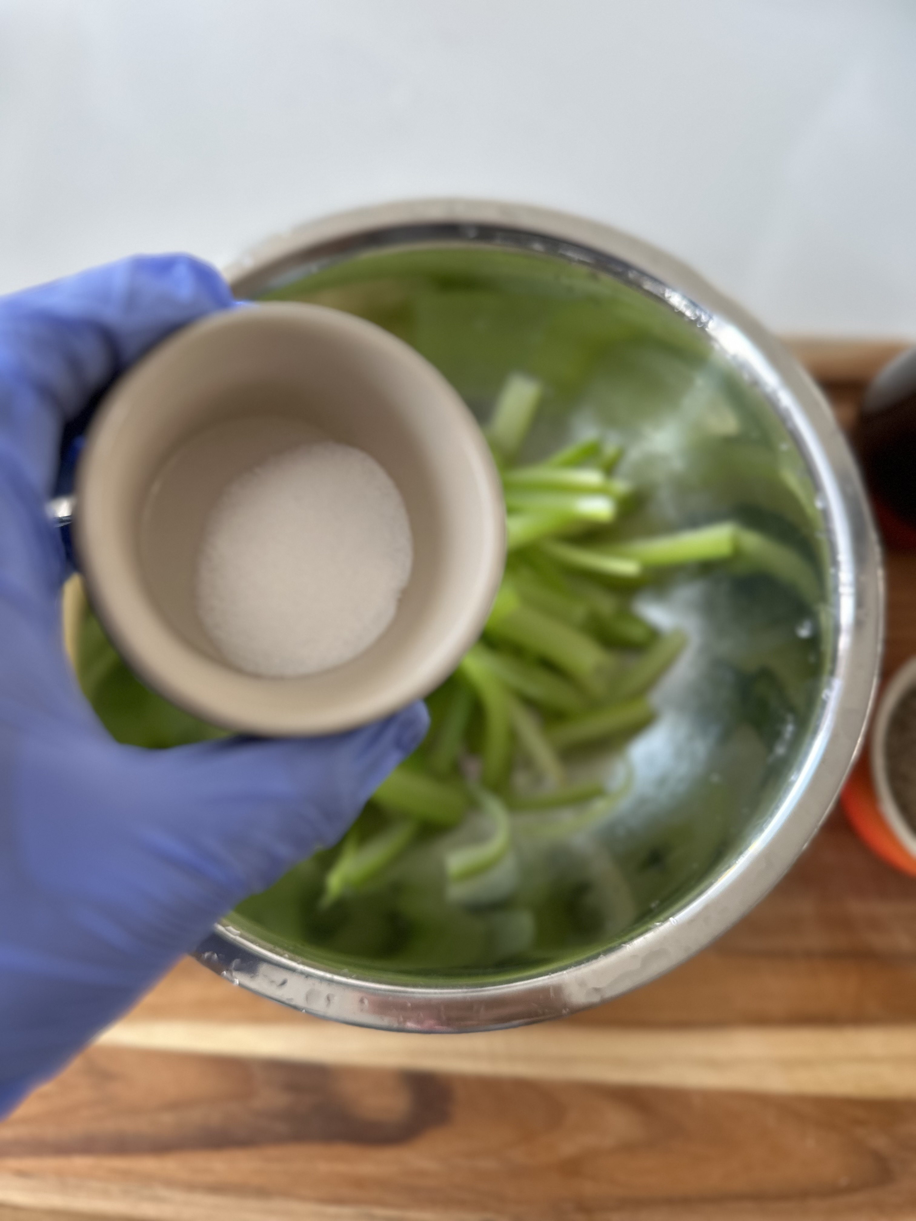 (오래 있으면 셀러리가 흐물거리고, 시간이 너무 적어도 식감이 억셔집니다)