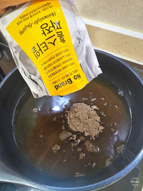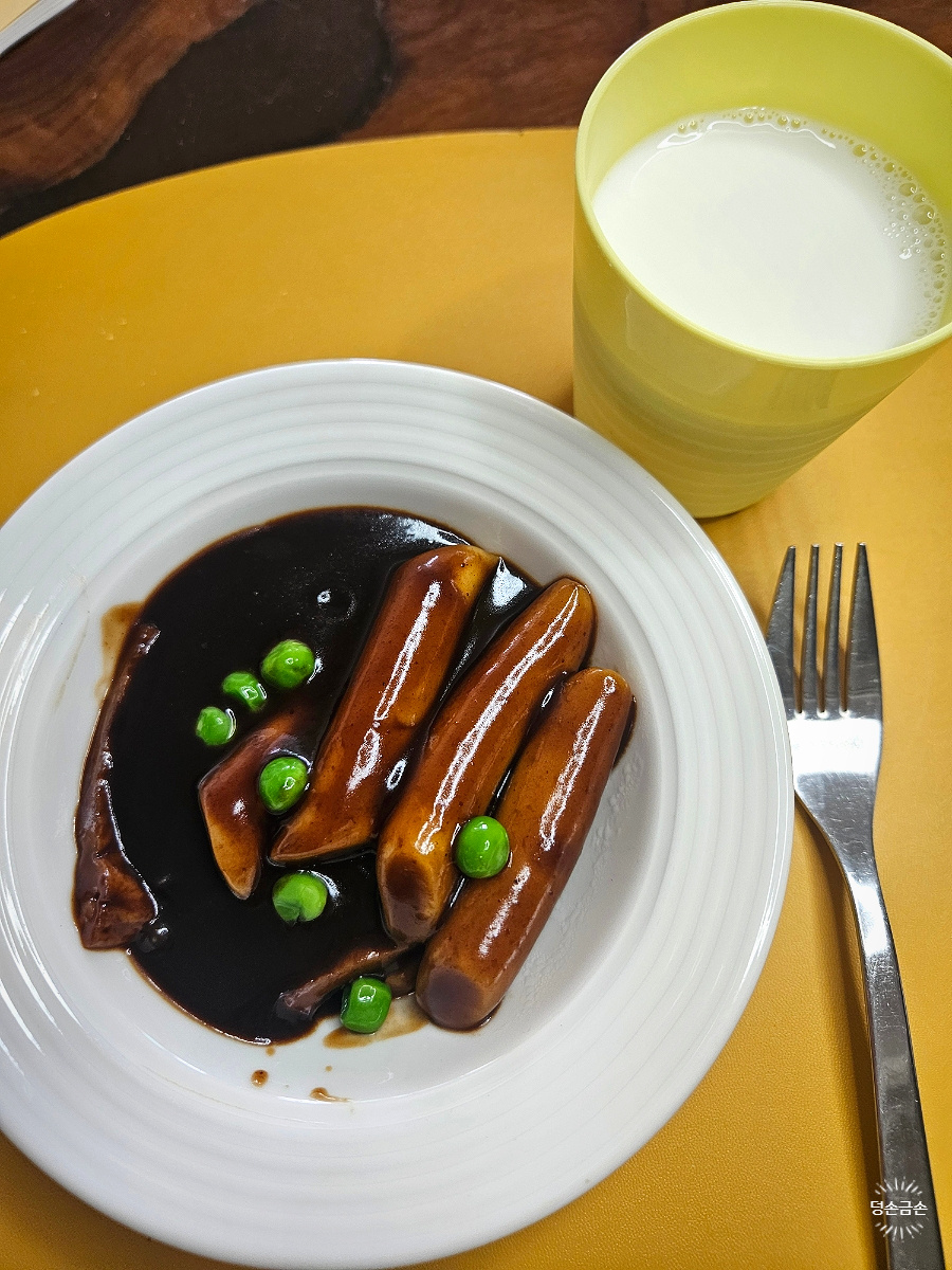 노브랜드 홈스타일 짜장 1봉 (100g)에 떡볶이떡 500g 넣고 만들었더니 양이 넉넉하게 남아서 (초등 고학년 2명 기준) 다음 날 삶은 메추리알 넣고 데워서 간식으로 한 번 더 써먹었네요 ㅎ