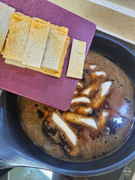 오늘의 아이 간식 = 짜장떡볶이로 결정하고 떡볶이떡과 어묵도 함께 업어왔어요.