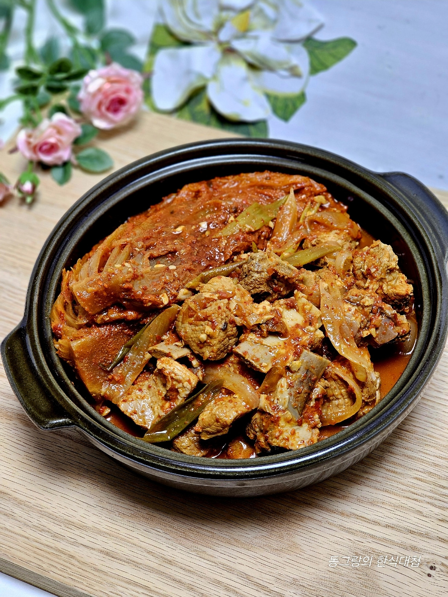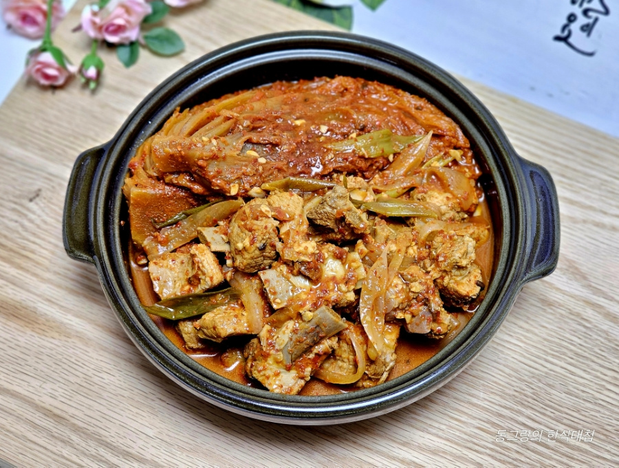 김치찜은 센 불에서 빠르게 끓이기보다 중불에서 천천히 오래 끓여주어야 고기도 부드럽고 김치도 맛있답니다.