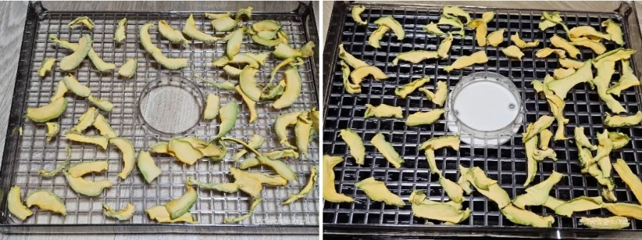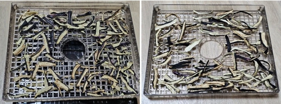 재료 양이나 건조기 사양에 따라 다르니 중간중간 확인해가며 시간 온도 조절하세요.