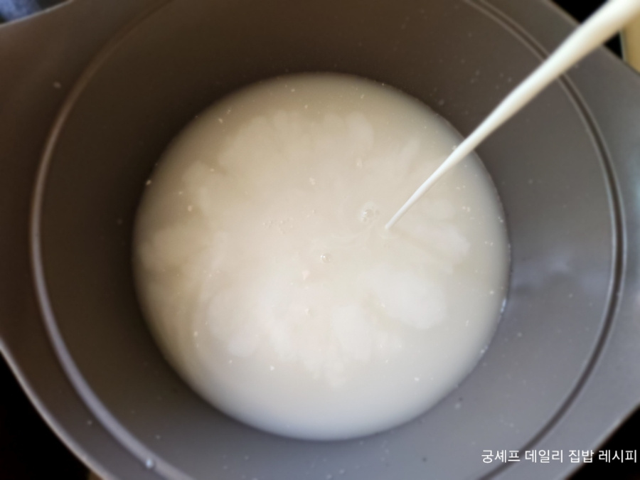 우유가 들어가야 더 부드럽고 찐득하니 파는 맛이 난다고해요.