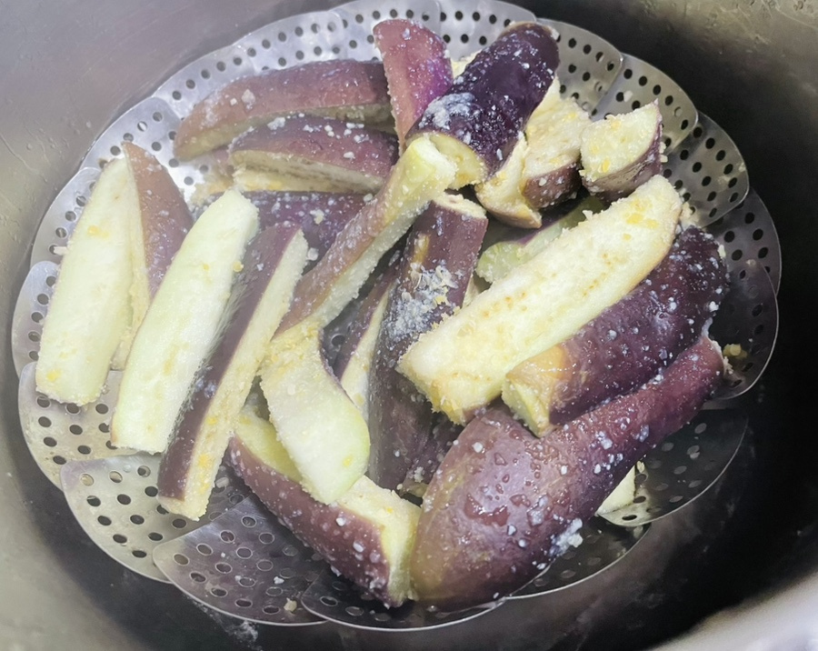 가지를 찌면 수분이 많이 나와서 고민이 될 때가 많은데 날콩가루와 찹쌀가루로 한겹 옷을 입혀 주니 가지 안의 수분을 가둬주는 효과가 있어서 수분도 많이 안생기고 가지를 통통한 상태로 유지해주고 양념도 더 잘 입혀져서 좋더라구요.