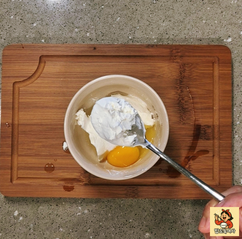 크림치즈100g 계란1개, 설탕1스푼, 전분1스푼