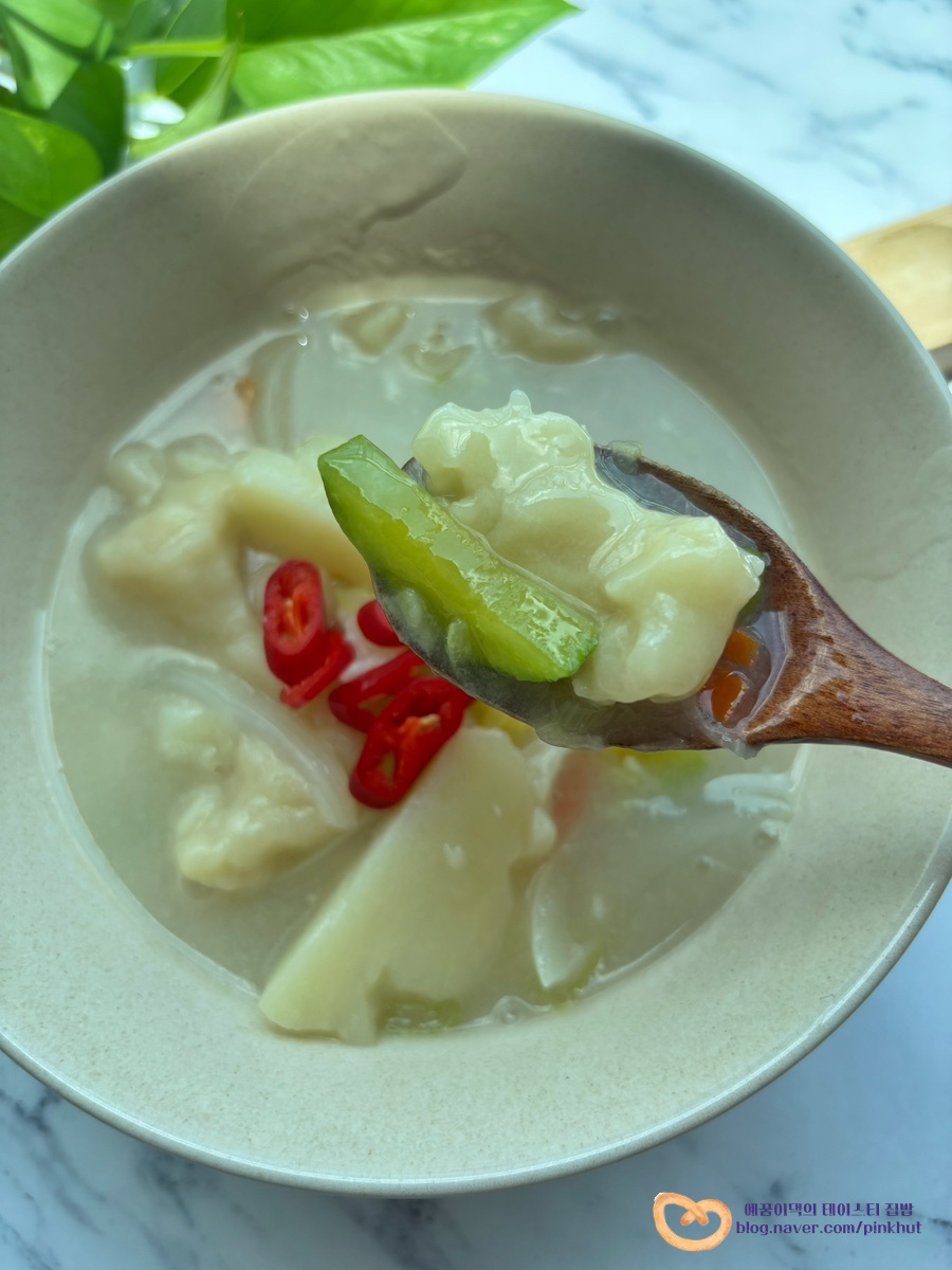 수제비 반죽의 경우 숙성 과정을 꼭 거쳐 주셔야 하기 때문에 드시기 전에 미리 작업해 두시면 좋아요.
