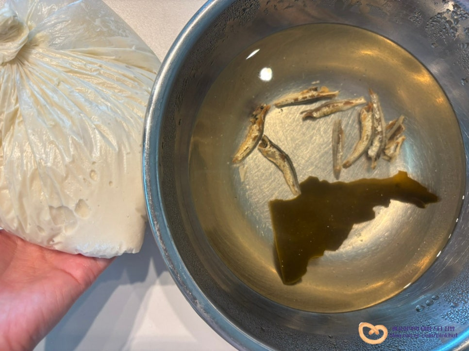 멸치다시마육수는 1.5L 넉넉히 우려내어 준비해 주세요