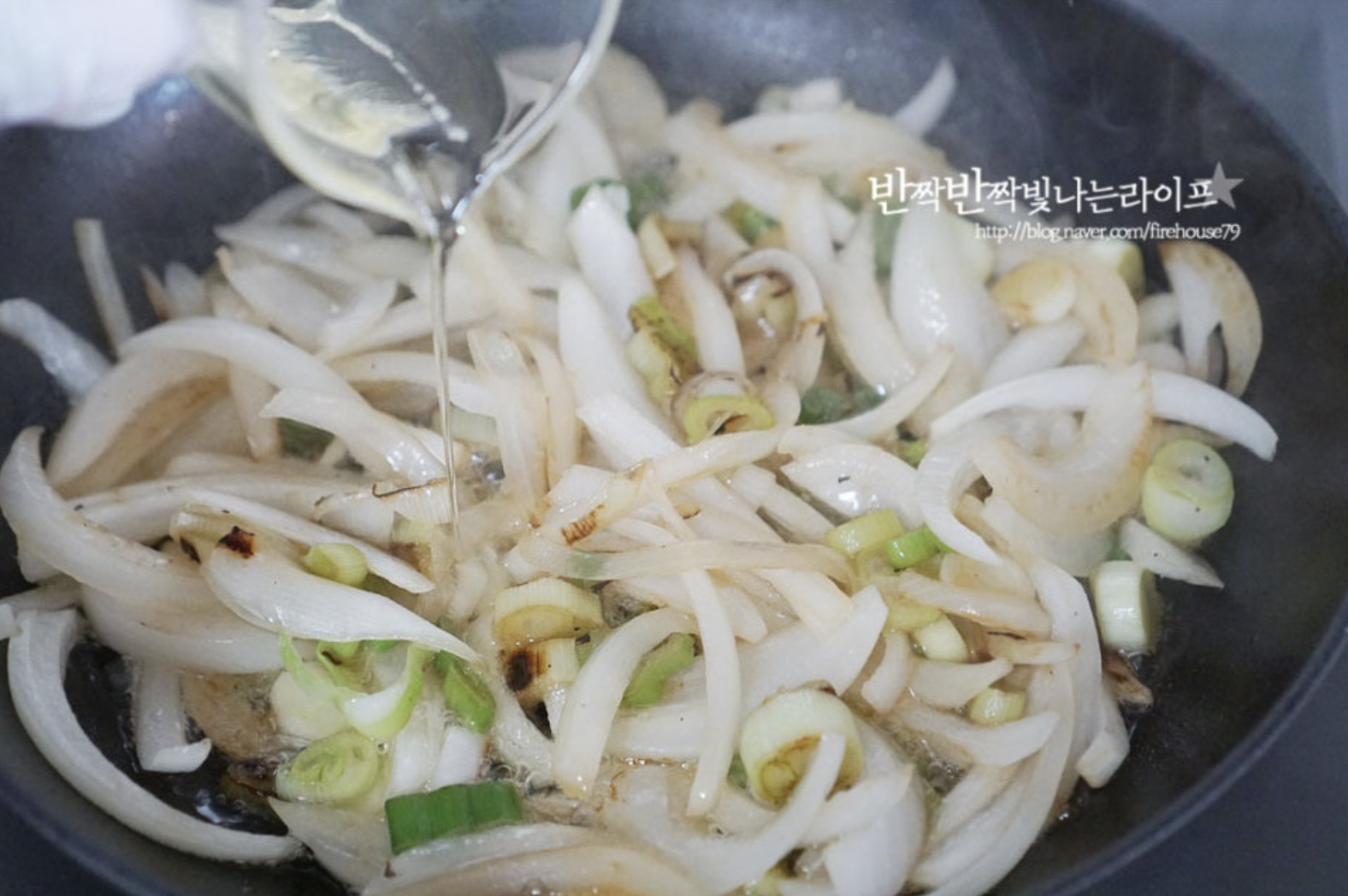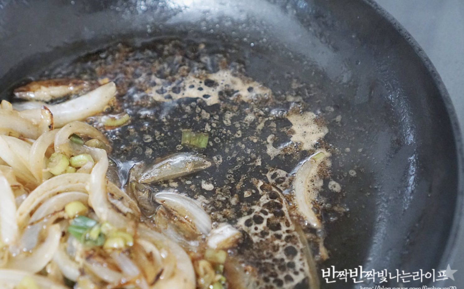 기름을 두르지않고 그대로 올려서 갈색이 될 때까지 뒤적이지 않고 강불에서 2~3분 구워주면 됩니다.