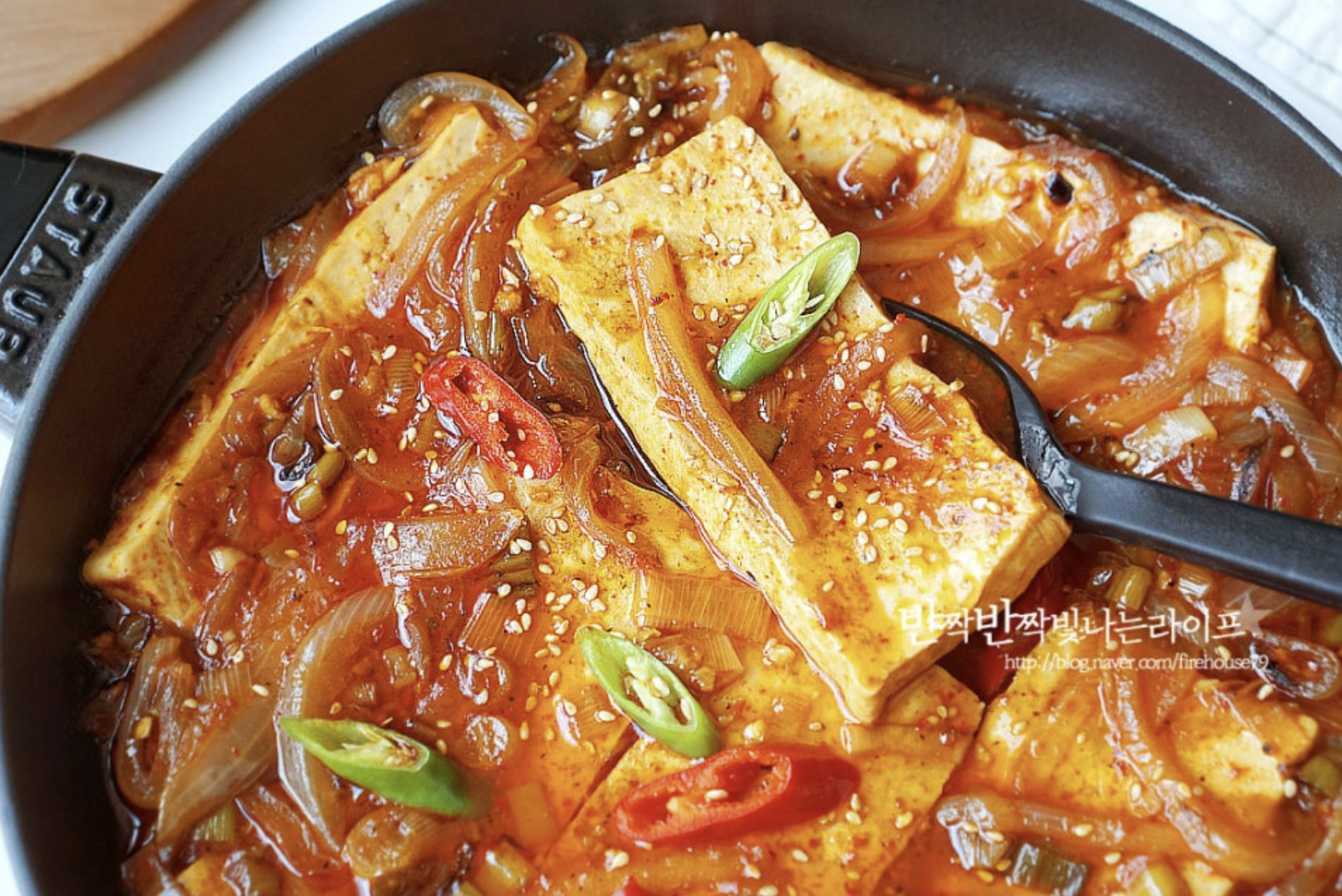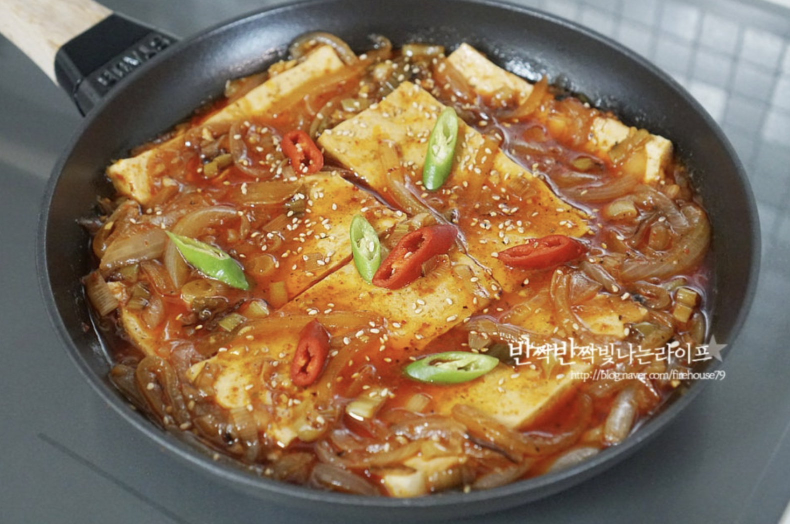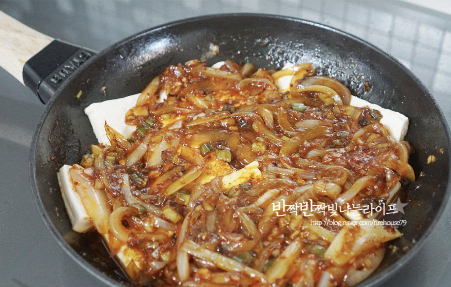 강불에서는 간이 배지 않으니 약불로 조리해서 두부 속에 간이 밸 수 있도록 해줍니다.