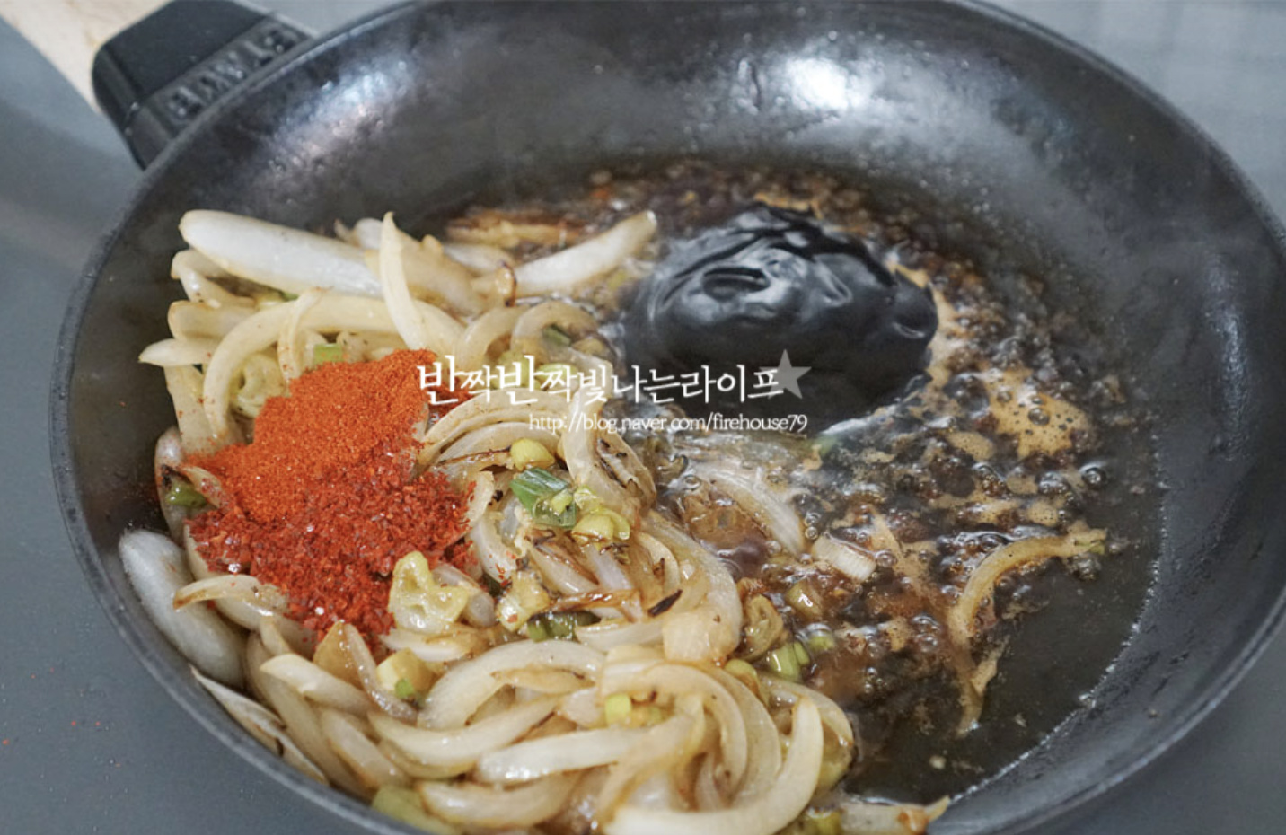 고춧가루는 쉽게 타기 때문에 간장과 따로 채소 위에 뿌려줍니다.
