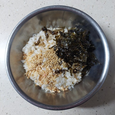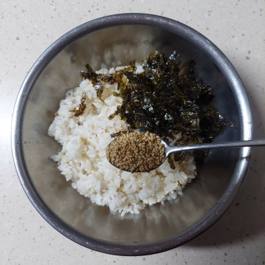 밥 1공기, 김가루 10g, 통깨 1큰술, 땅콩가루 1큰술