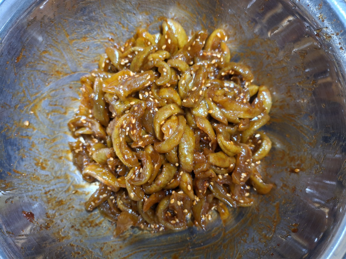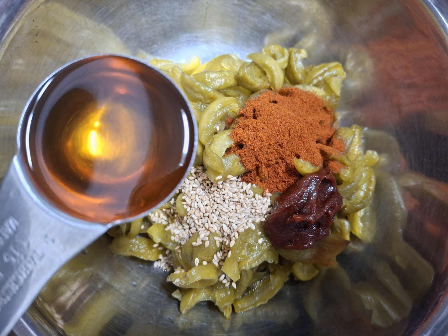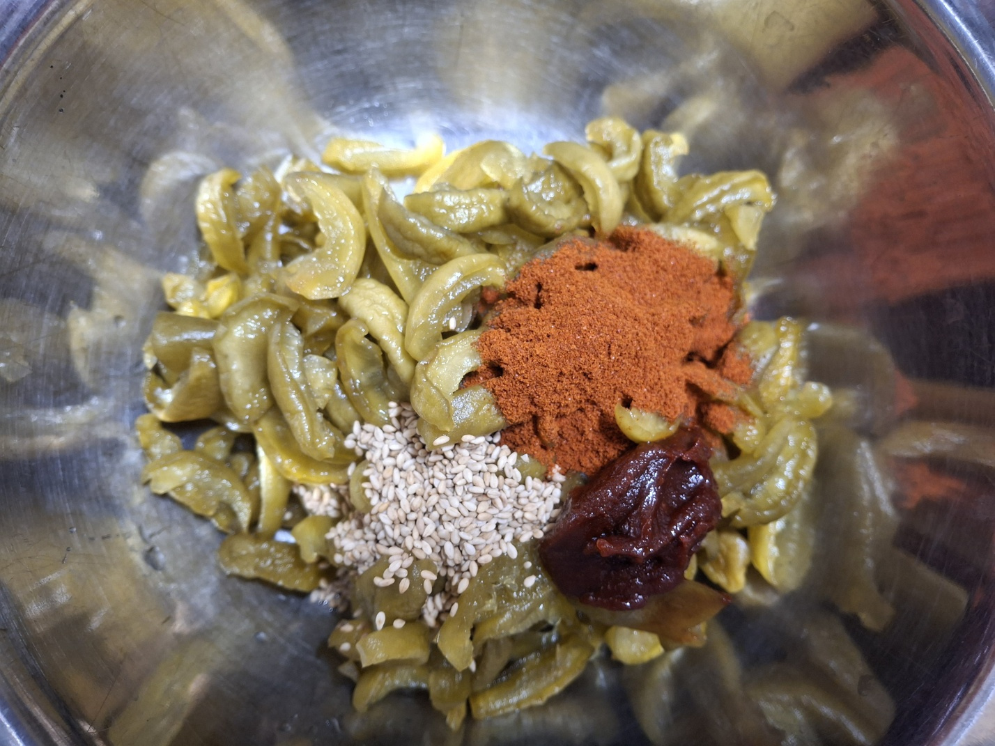 고추장 1큰술, 고운 고춧가루 1큰술, 통깨 1큰술