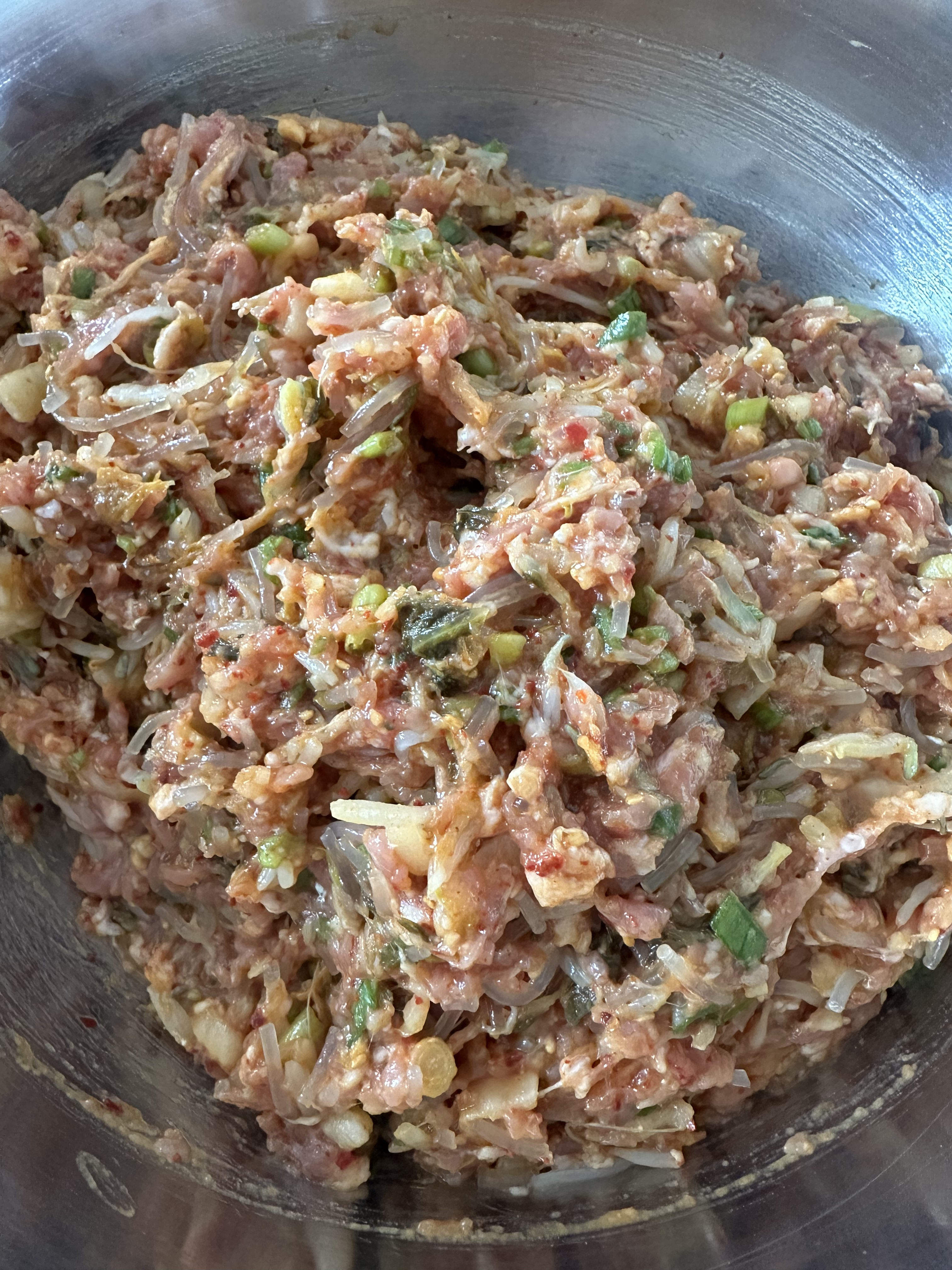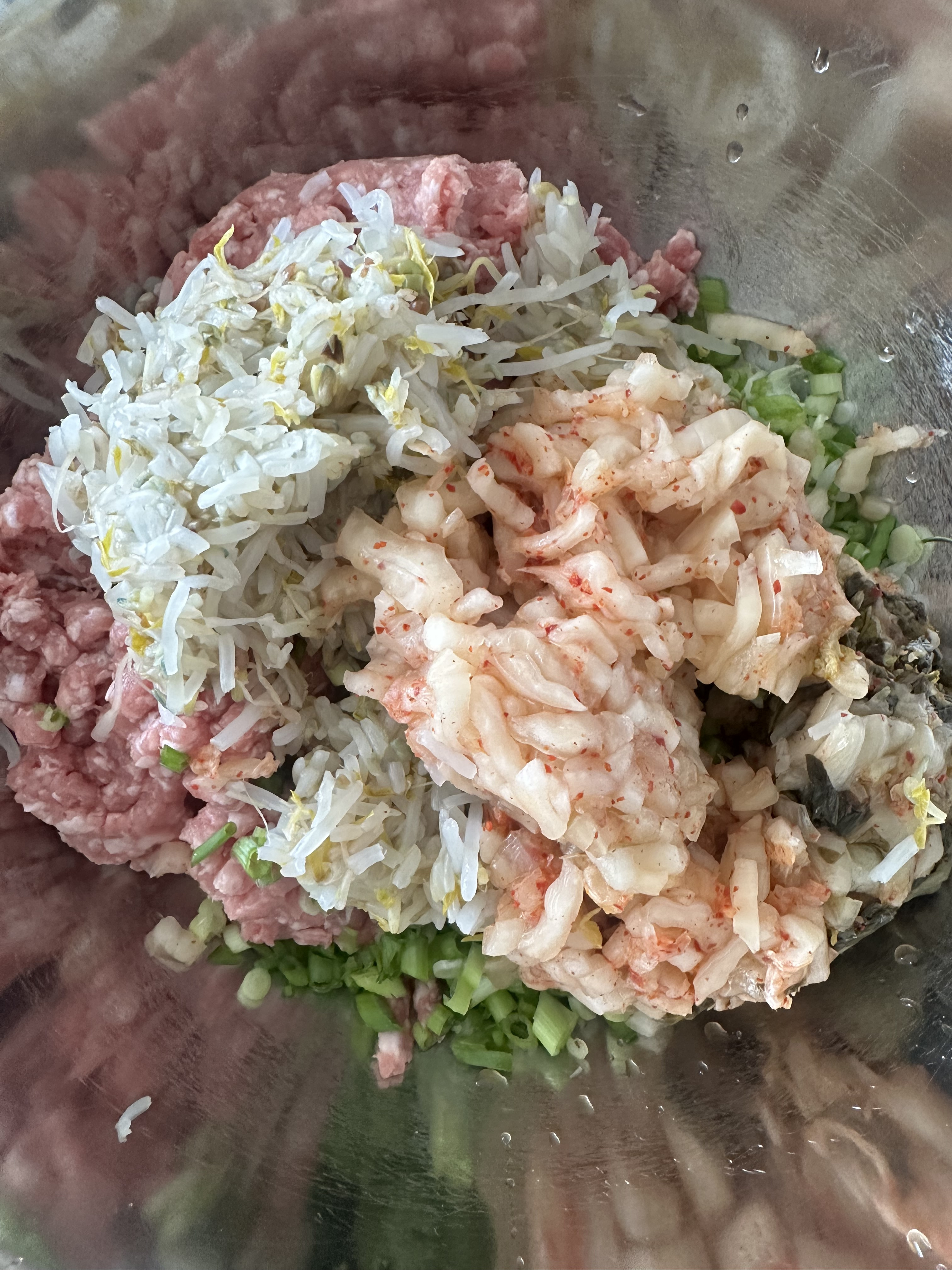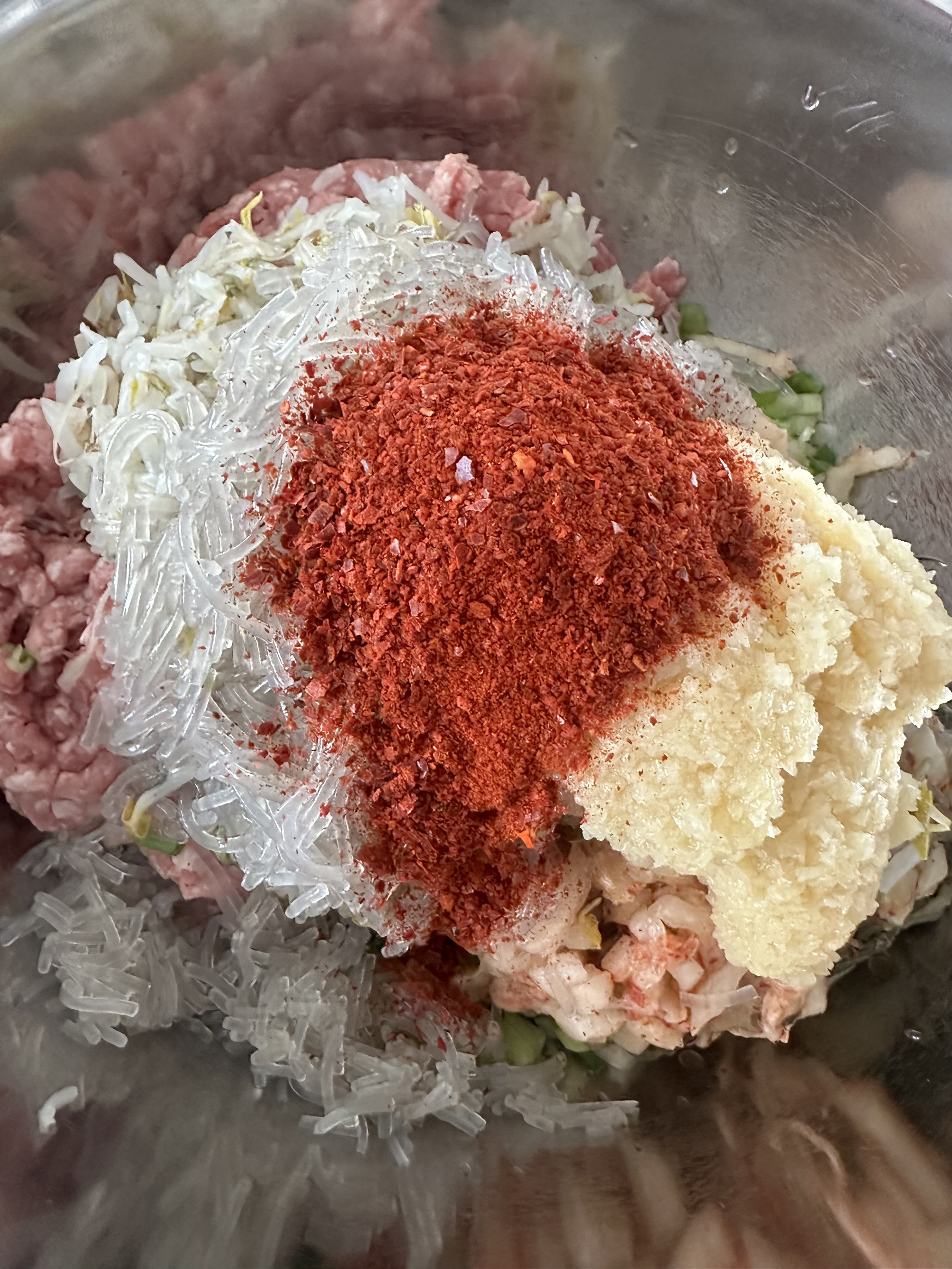 (Tip : 만두 속에 들어가는 돼지고기와 김치는 맛이 강하지만,