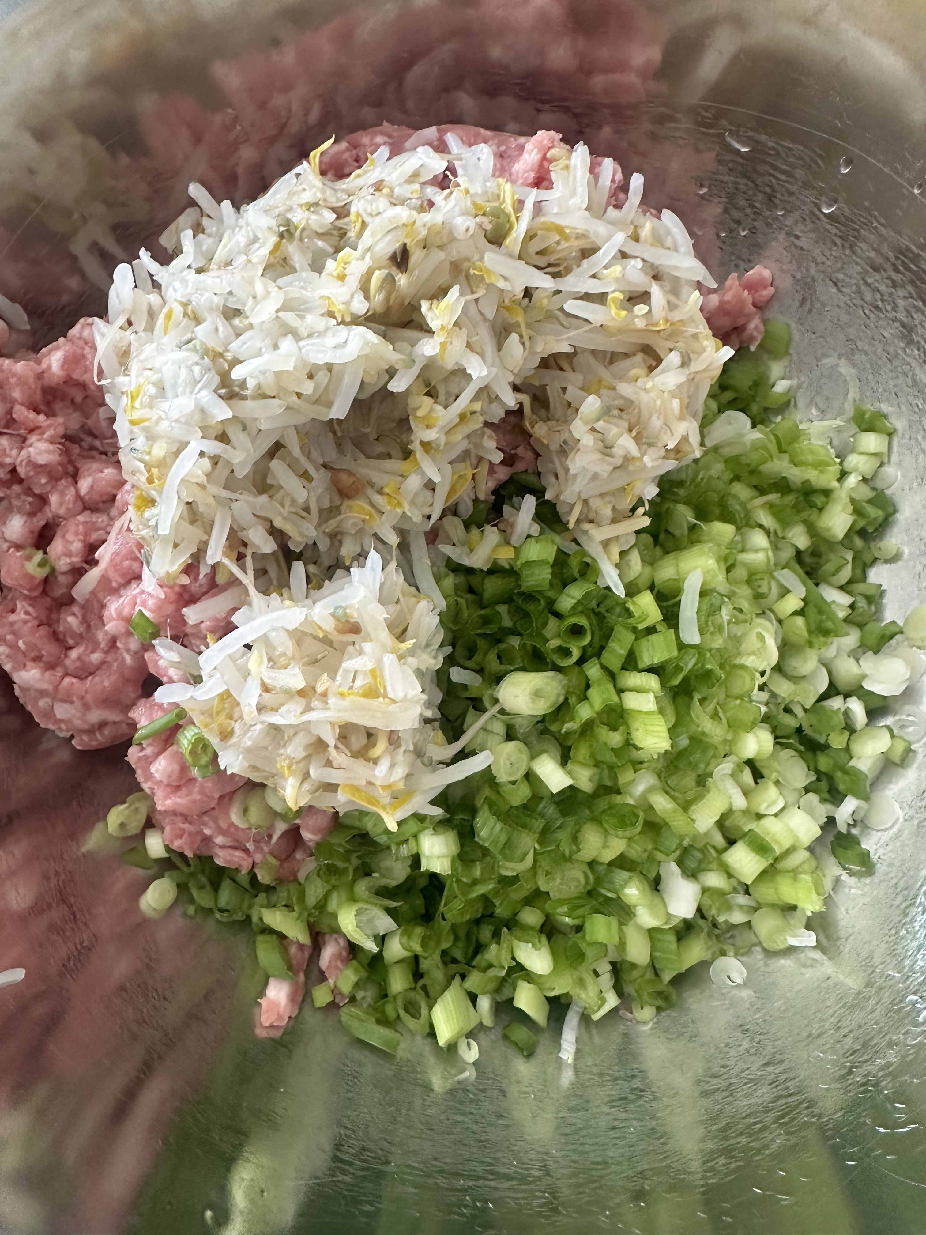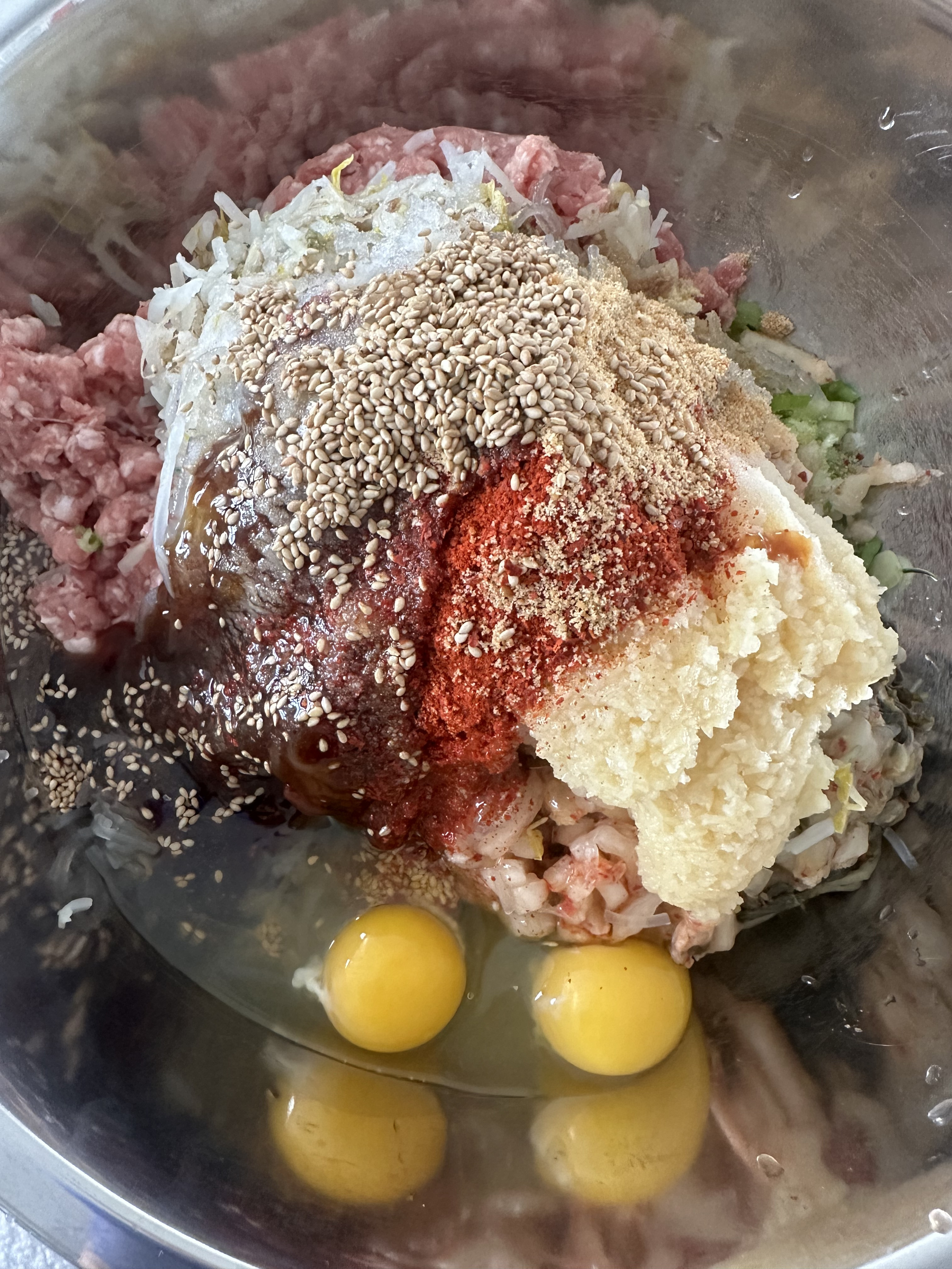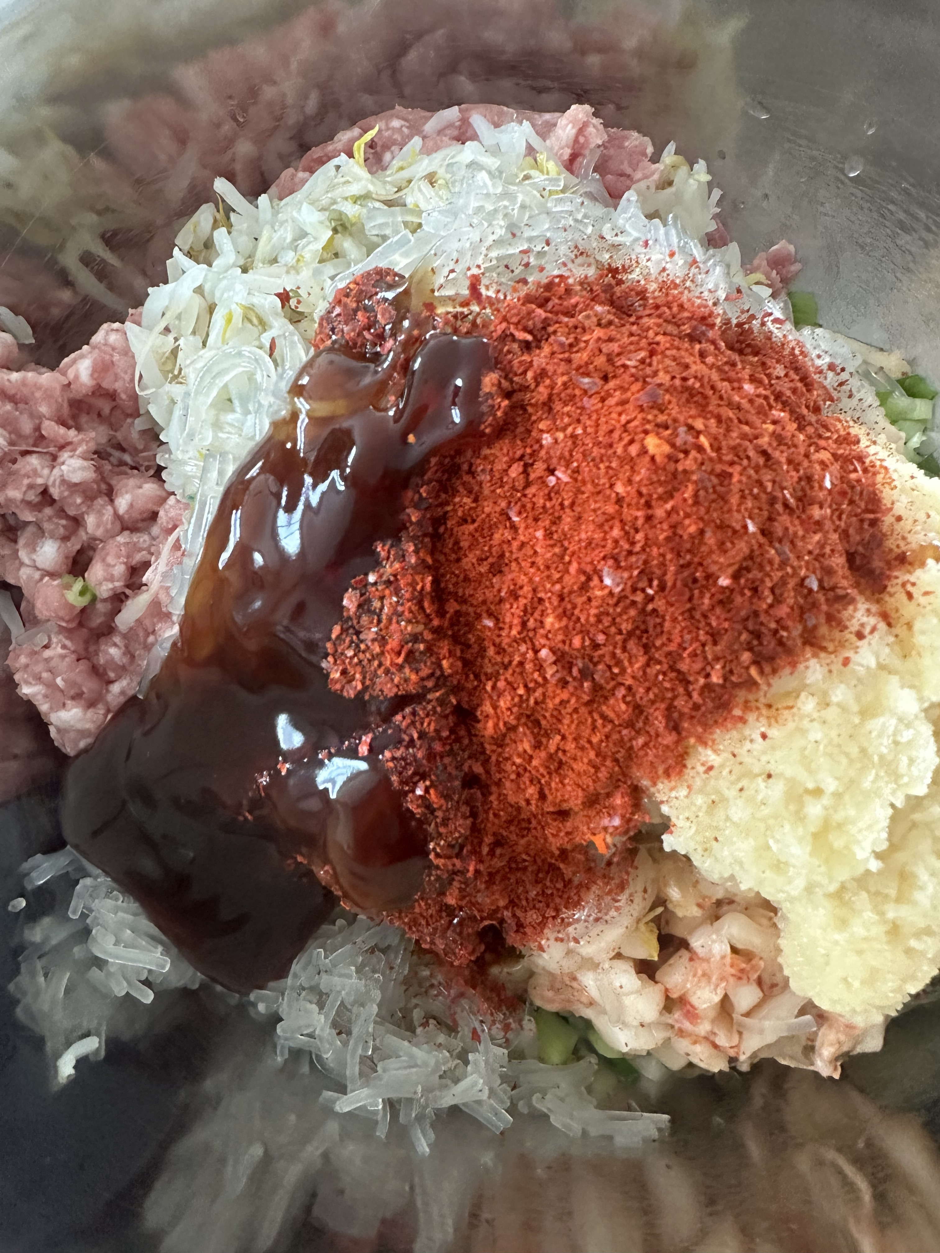 (Tip : 만두 속에 들어가는 돼지고기와 김치는 맛이 강하지만,