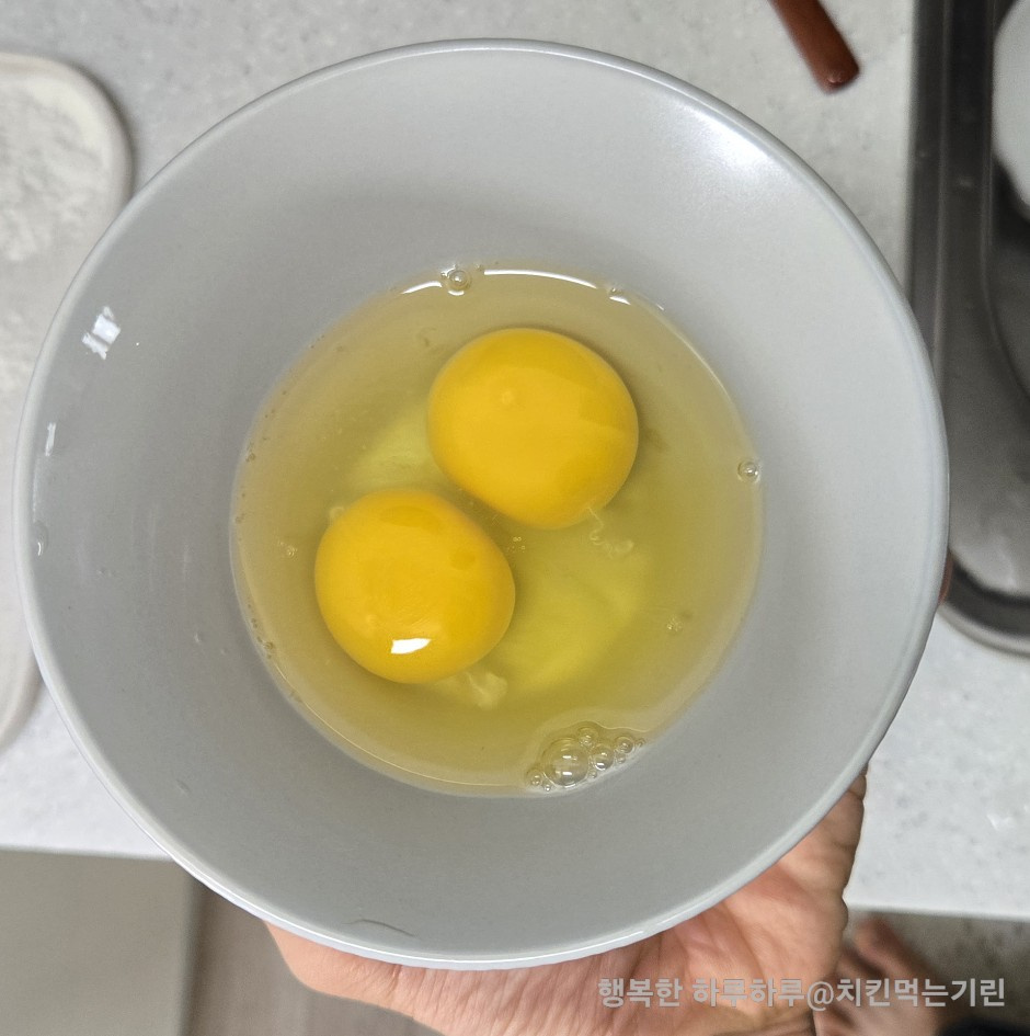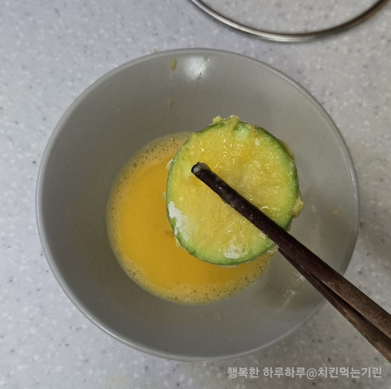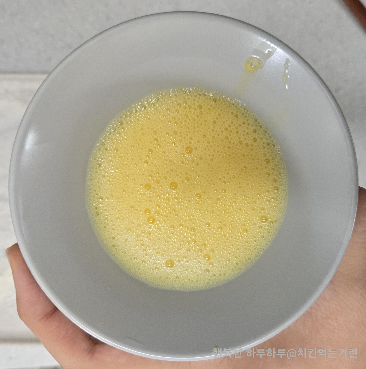 계란은 최대한 잘 섞어줍니다. 기호에 따라 계란물에 간을 해줍니다.(저는 안했습니다.)