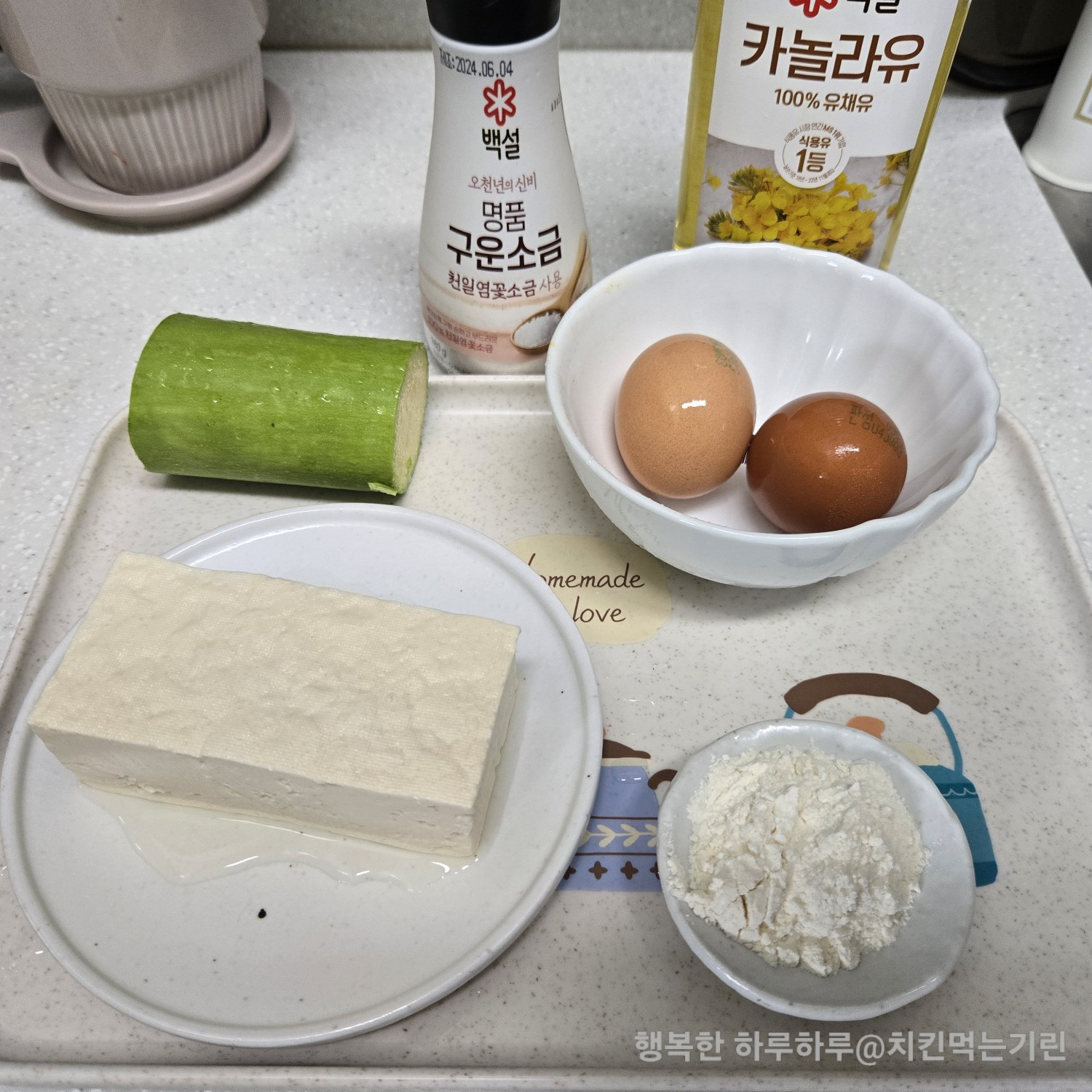 수분제거를 하는동안 계란물과 부침가루를 준비합니다.