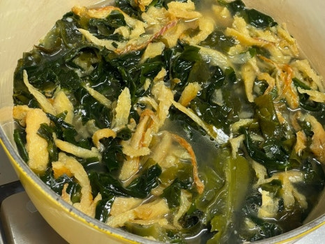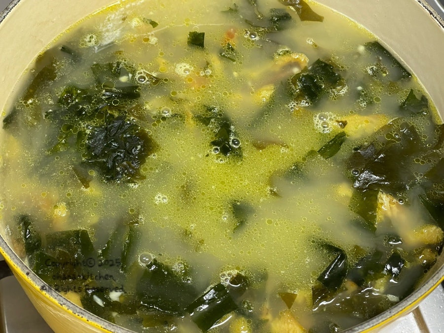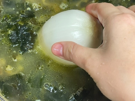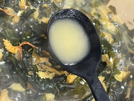 *양파 하나를 통으로 넣고 끓여 주면 국물에 은은한 감칠맛과 단맛이나서 더 맛있는 미역국을 끓일 수 있어요.