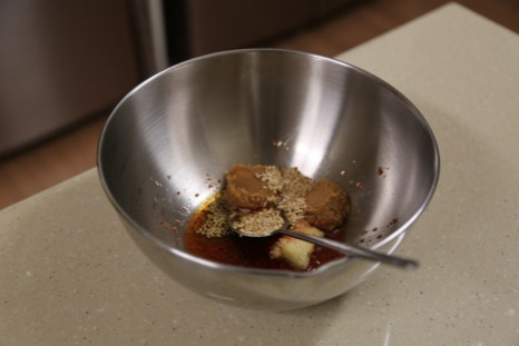 된장 1.5스푼, 매실청 1.5스푼, 식초 1.5스푼, 고춧가루 0.5스푼, 다진 마늘 0.5스푼, 통깨 1스푼, 참기름 약간