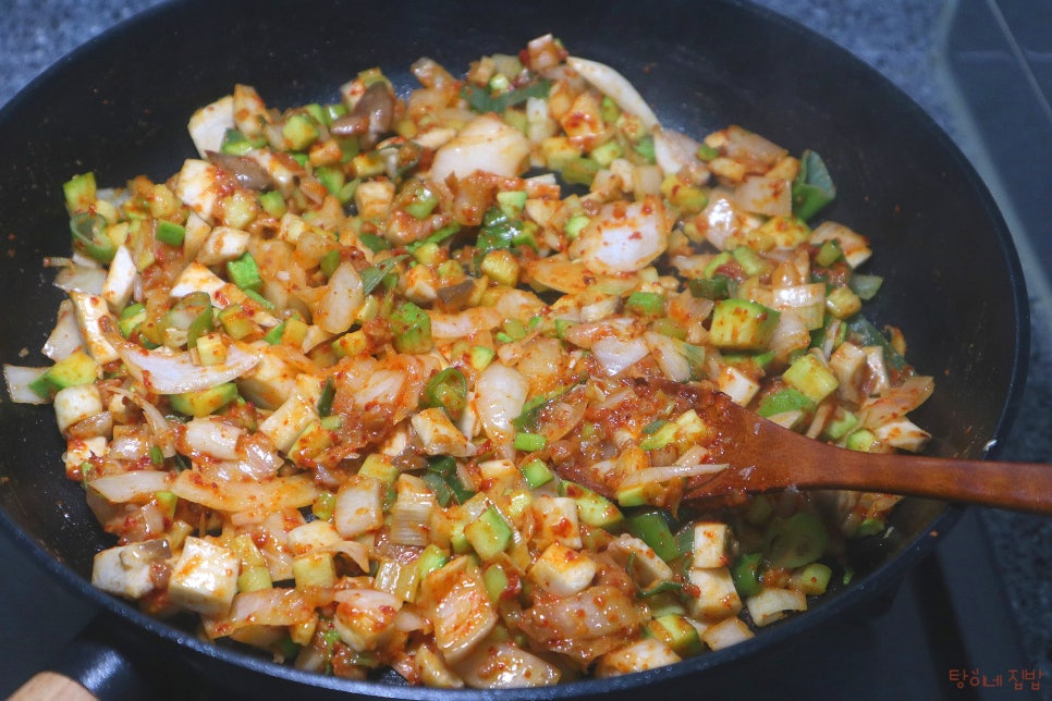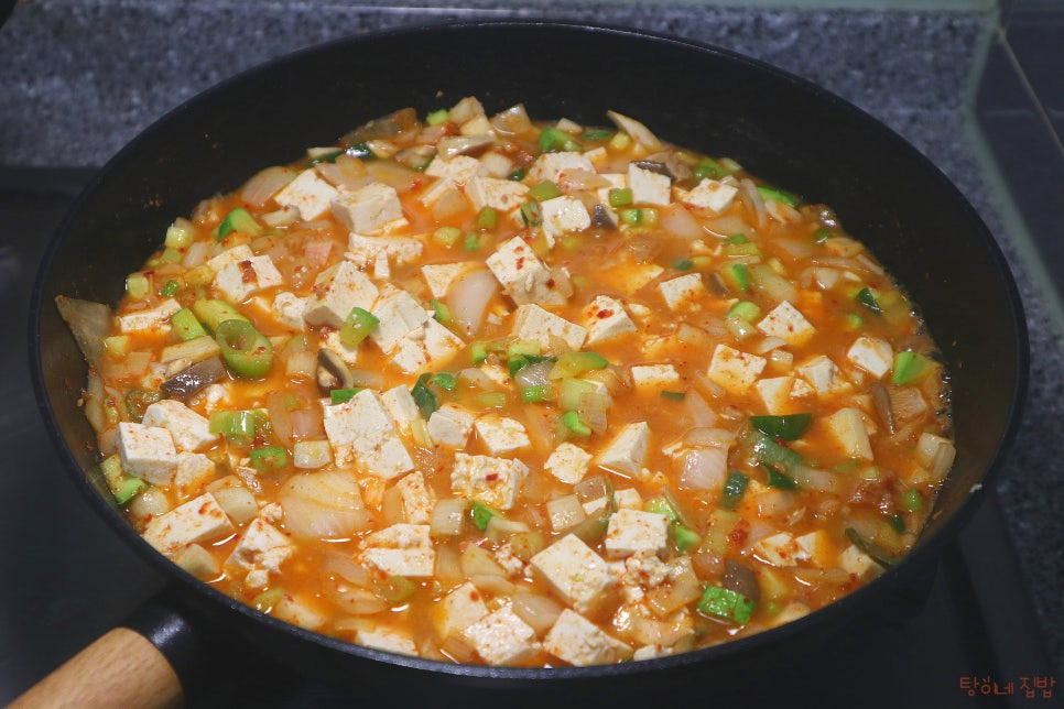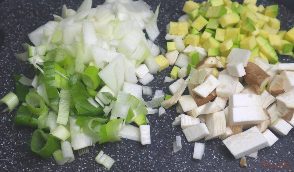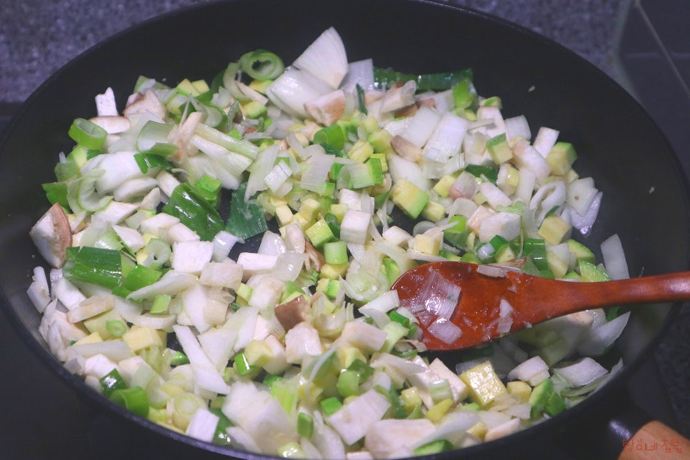 애호박 1/2 새송이버섯 1개 양파 1/2 대파 10cm 3개 두부 한 모(300g)