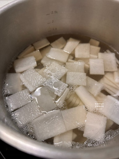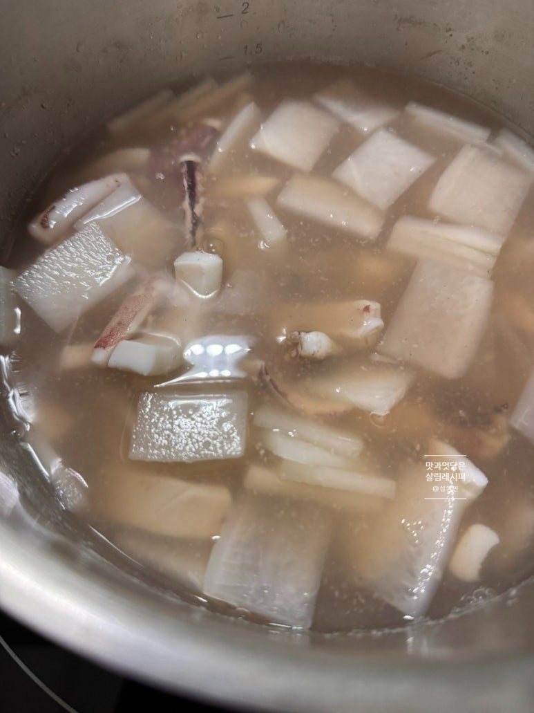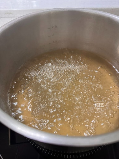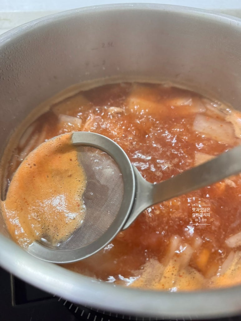끓어오르면서 생기는 거품은 걷어내면서 보다 맑게 만들어 줍니다.
