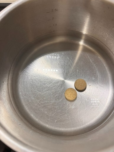 물 1L에 동전육수 2알을 사용해 간단하게 깊은 감칠맛 살려 육수 만들어 줄게요. 보글보글 끓어오를 정도로 한소끔 끓여 줍니다.