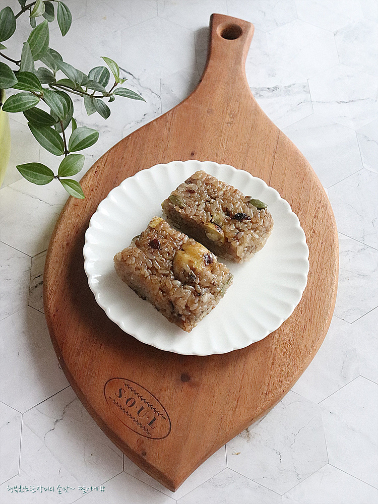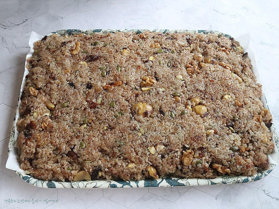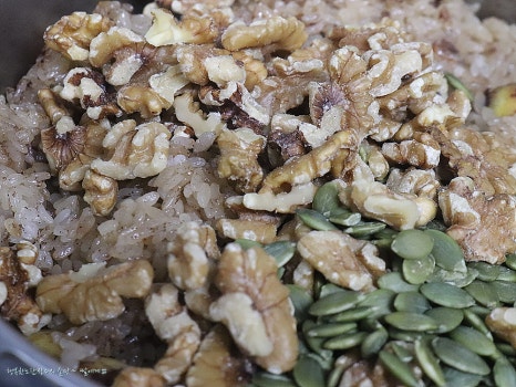 찹쌀 4컵,밤 10개, 대추 10개, 호두 1.5 컵,호박씨 1/2컵,