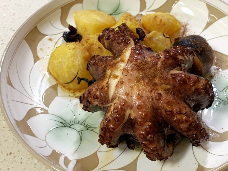 그리고 파프리카가루와 레몬즙을 살짝 뿌려서 마무리하면 스페인 문어요리