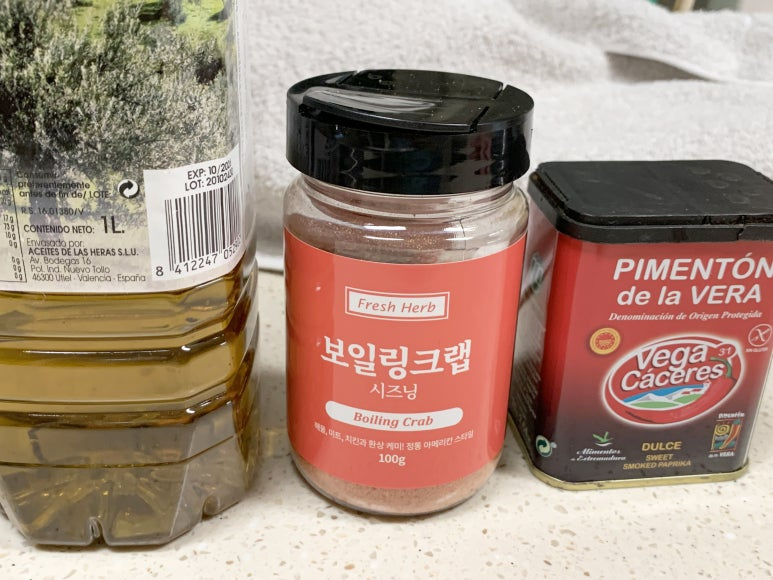 올리브오일, 보일링크랩가루, 파프리카가루를 넣으려고 합니다.
