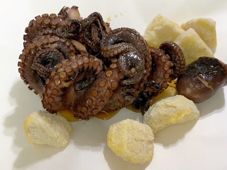 푹 삶아낸 문어에 올리브오일과 보일링크랩시즈닝을 뿌려 줍니다.