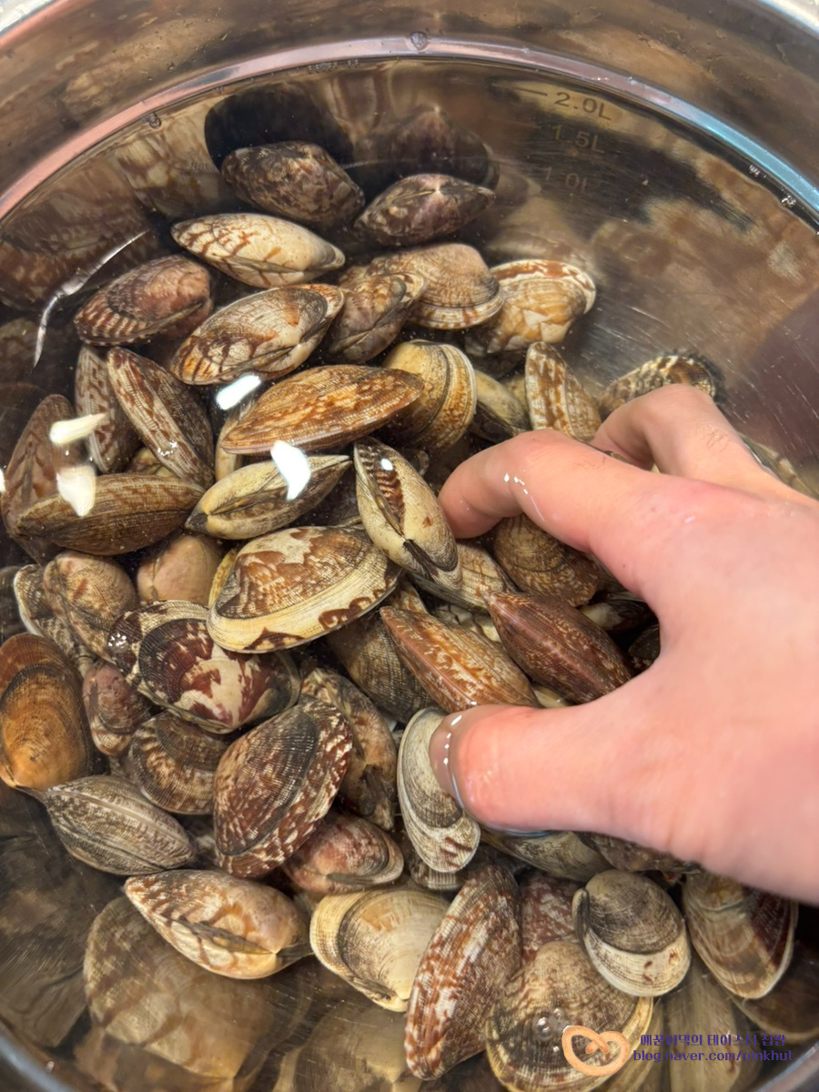 바지락 해감시간은 너무 짧게 하면 모래가 남아있고, 너무 오래 하면 질겨질 수 있어요. 2시간 정도 잡아주시면 적당합니다