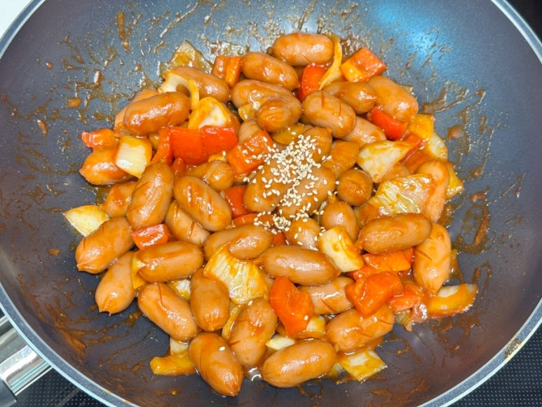 비엔나소시지와 냉장고 속 남은 야채들로 휘리릭 볶아서 간단하게 볶음 반찬을 만들었어요 쏘아 볶음으로 맥주안주로도 먹기 좋고 도시락 반찬으로도 잘 어울리는 메뉴에요. 케첩과 고추장을 1 대 1.5 비율로 넣고 양념을 만들어서 볶아주면 밥반찬으로 간이 딱 맞더라고요! 비엔나소시지와 야채로 만든 볶음 반찬 쏘야 볶음 레시피를 남겨 보도록 할게요 :)