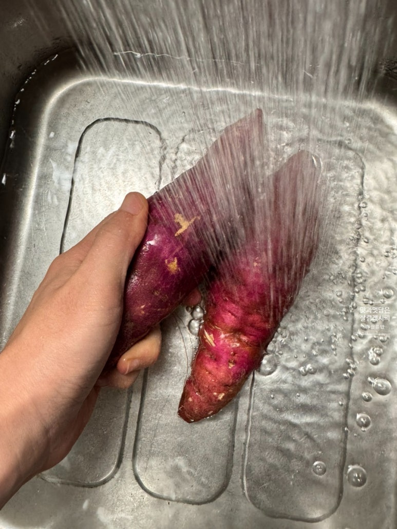 영양가가 많은 껍질도 그대로 활용하기 때문에 깨끗하게 세척해 줍니다. 흙이 없이 비교적 깨끗한 상태로 받아보았지만 꼼꼼하게 세척해 주었어요.