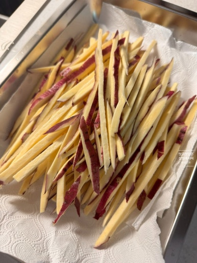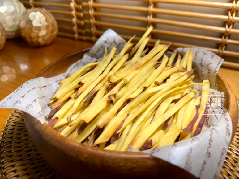 햇고구마 제철이 왔어요. 수분 많은 호박고구마보다 단단하기 때문에 오독오독한 식감으로 바삭하게 구워 간식으로 즐기기에 좋은데요. 에어프라이어에서 구워주면 휴게소에서 먹는 고구마스틱을 집에서도 맛있게 만들 수 있답니다.