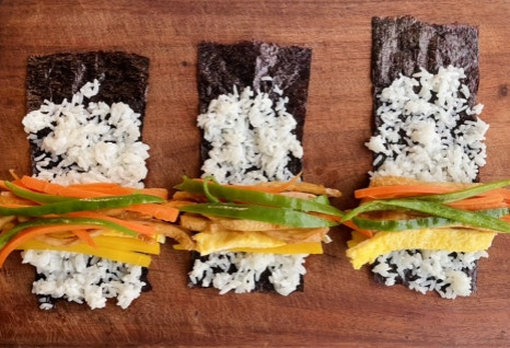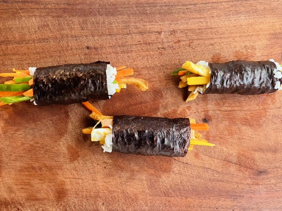 재료를 적게 넣어 더 얇은 김밥을 만들어도 좋을 거 같아요.
