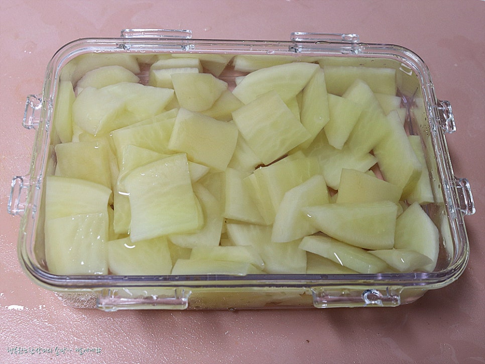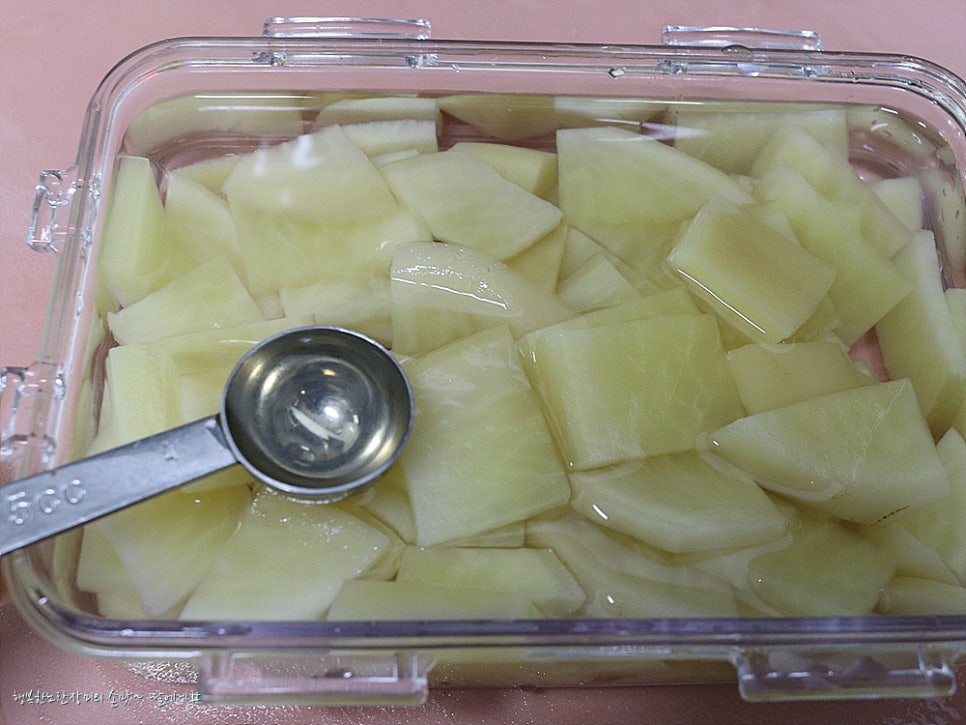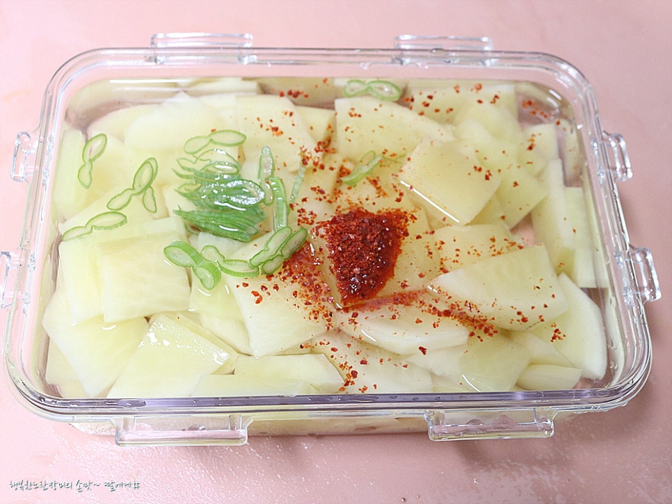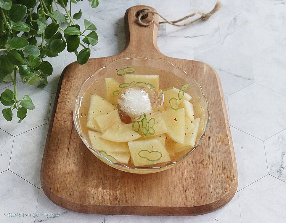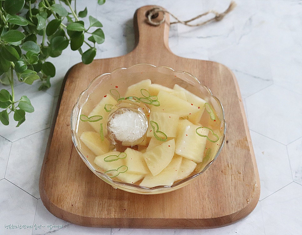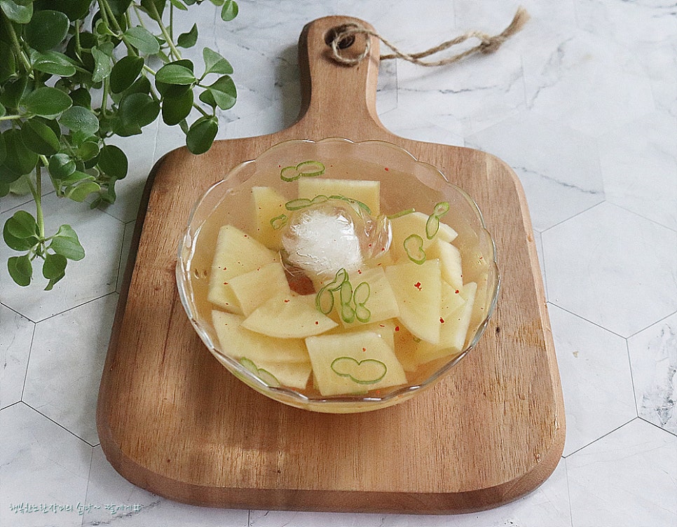 요 짠지는 유리그릇에 담아내야 보기에도 시원하죠~
