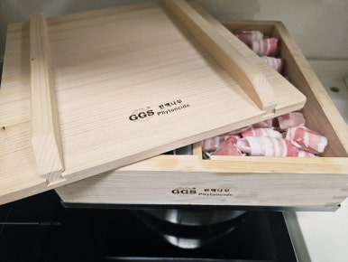 뜨거운 스팀을 위해 적당한 양의 물을 붓고 15분가량 찜을 해주면 되는데... 찜기의 뚜겅은 한번 물에 적셔서 찜을 해주는데... 난 갠적으로 그렇게 하는 이유는 너무 많은 수분을 편백나무가 빨아들이는거 같고 편백향이 더 진하게 재료에 스며든다고 생각하기 때문이다 (아주 갠적인 생각 ㅎㅎ)