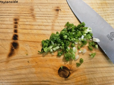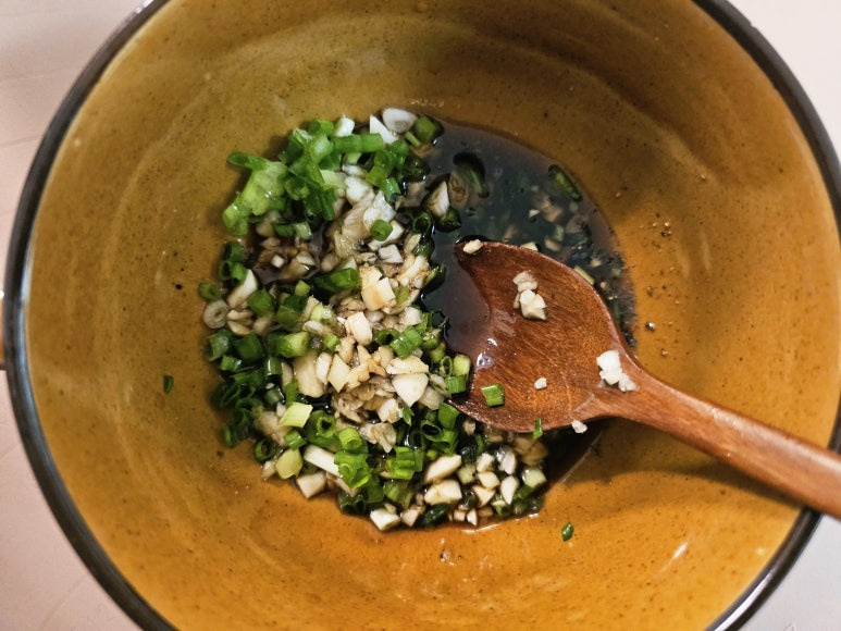 마늘 5~6알을 잘게 다져주고 쪽파 2뿌리도 잘게 썰어서 준비해준다